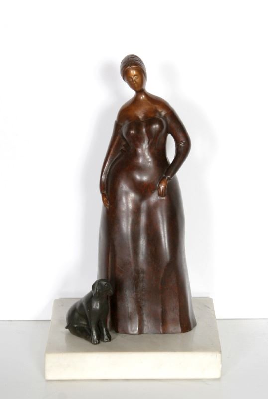 Branko Bahunek, Woman with Dog, Bronze Sculpture
