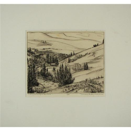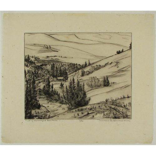 Branson Stevenson (1901-1989) Etching, "Trail of the Northfork Sun River", #2/30, 1940, image size 6 3/4" x 8 5/8", pencil signed