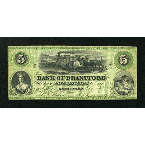 Brantford, CW- The Bank of Brantford $5 Nov. 1,