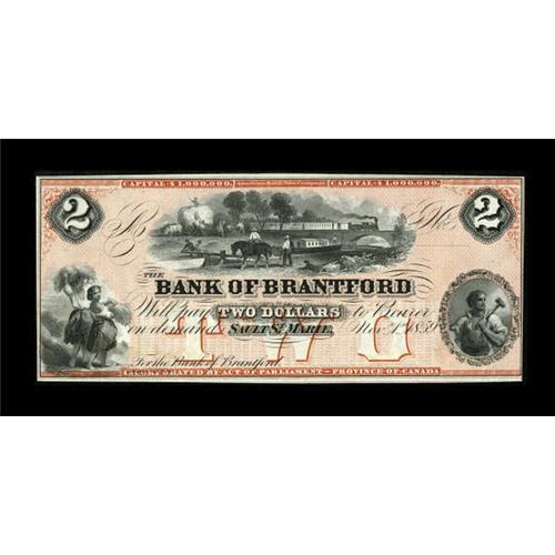 <B>Brantford, ON- Bank of Brantford</B></I> $2 Nov. 1, 1859 Ch. 40-12-04R<BR> A lovely remainder example which is payable in Sault St. Marie. <B>Uncirculated.</B></I><BR><BR><b>Shipping:</b> Coins & Currency (<a target="_blank" href="http://www.heritageauctions.com/common/shipping.php">view shipping information</a>)