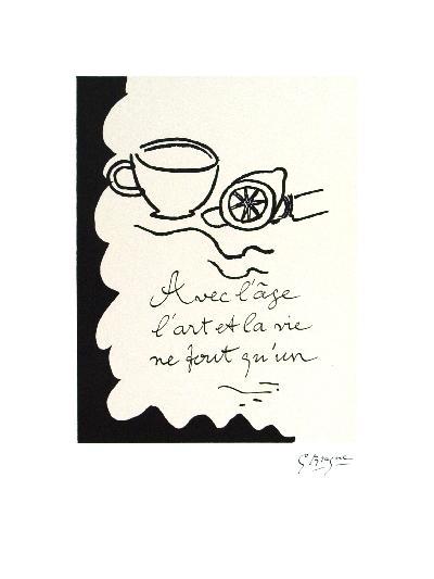 Limited edition reproduction of Braque's "Avec L'Age" printed on Stonehenge Paper, plate signed but not numbered. Published by Maeght and printed by ARTE in Paris. Limited to 1000 copies.