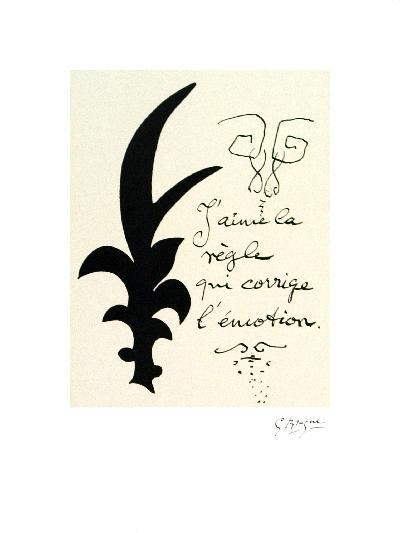 Limited edition reproduction of Braque's "J'aime la regle" printed on Stonehenge Paper, plate signed but not numbered. Published by Maeght and printed by ARTE in Paris. Limited to 1000 copies.