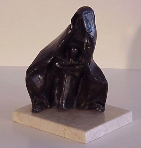 MOTHER AND CHILD, 1979, cast bronze sculpture with dark patina, 7 ¼” high, signed from the numbered edition 25, mounted to marble base. $300/500