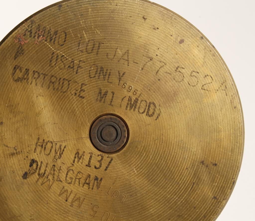 Brass 105mm cannon shell approximately 14.5” long and 4” in diameter (dated 1969). Est.: $25-$50.