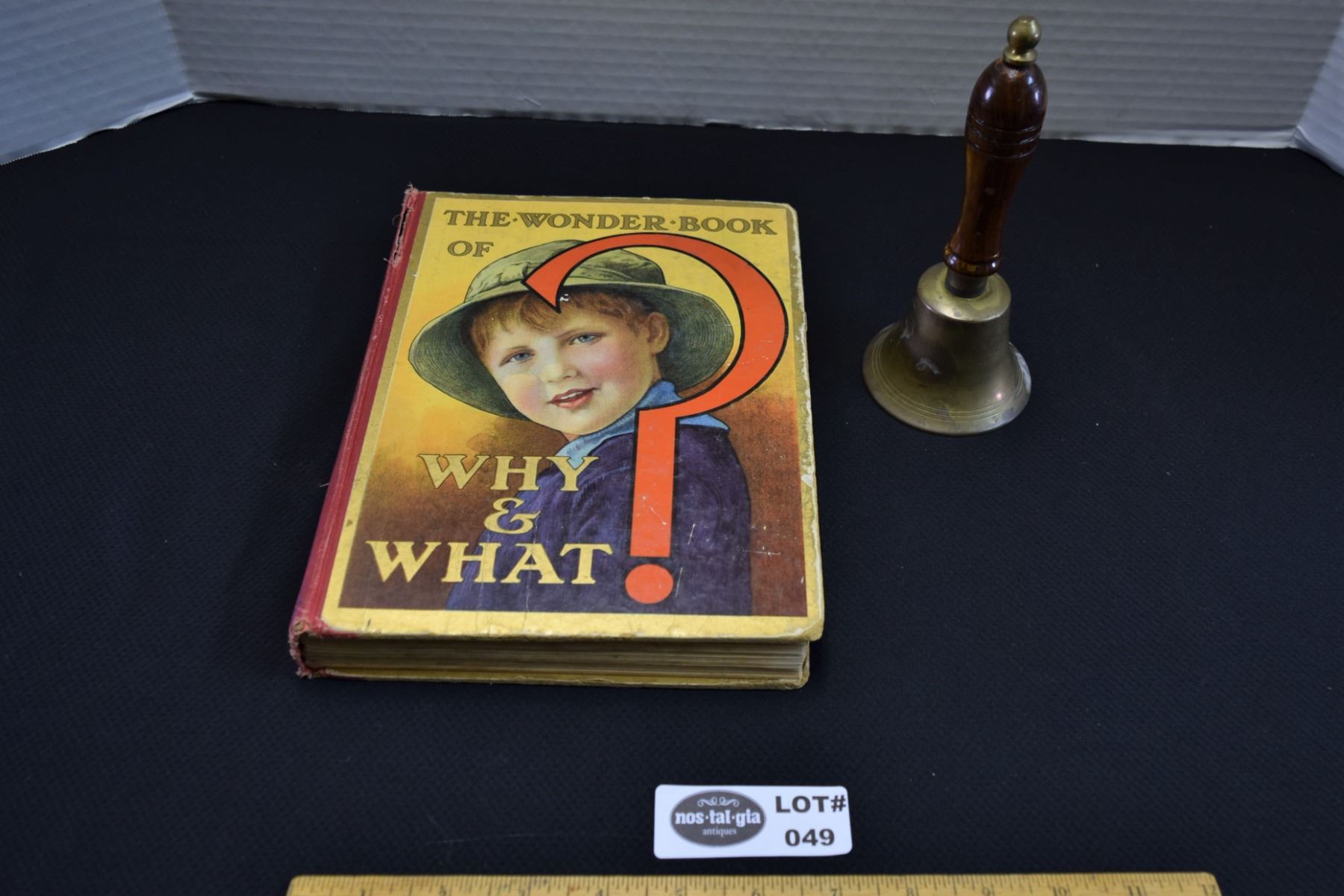 Brass Bell with Rosewood Handle and 1929 Wonder Book of Why and What