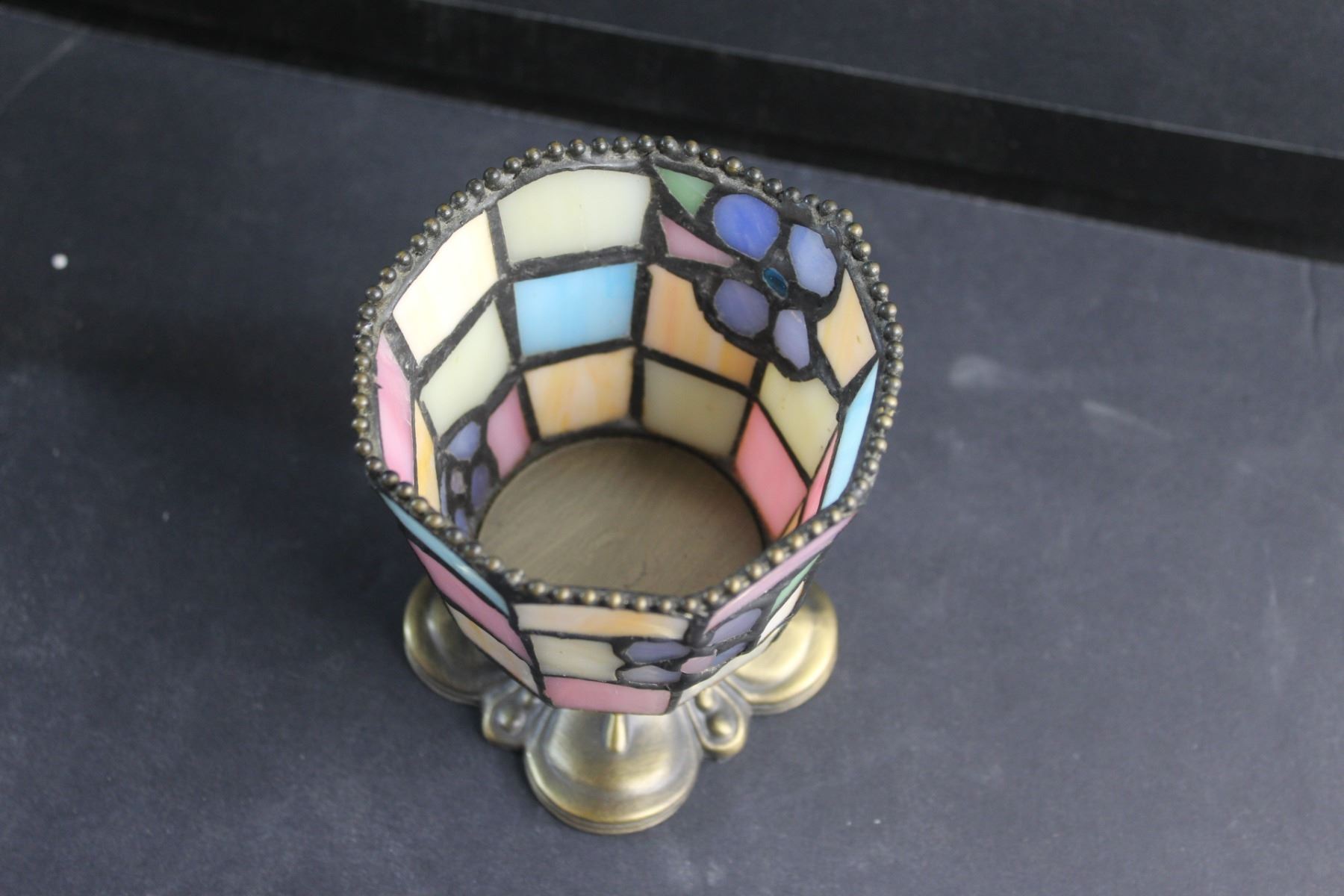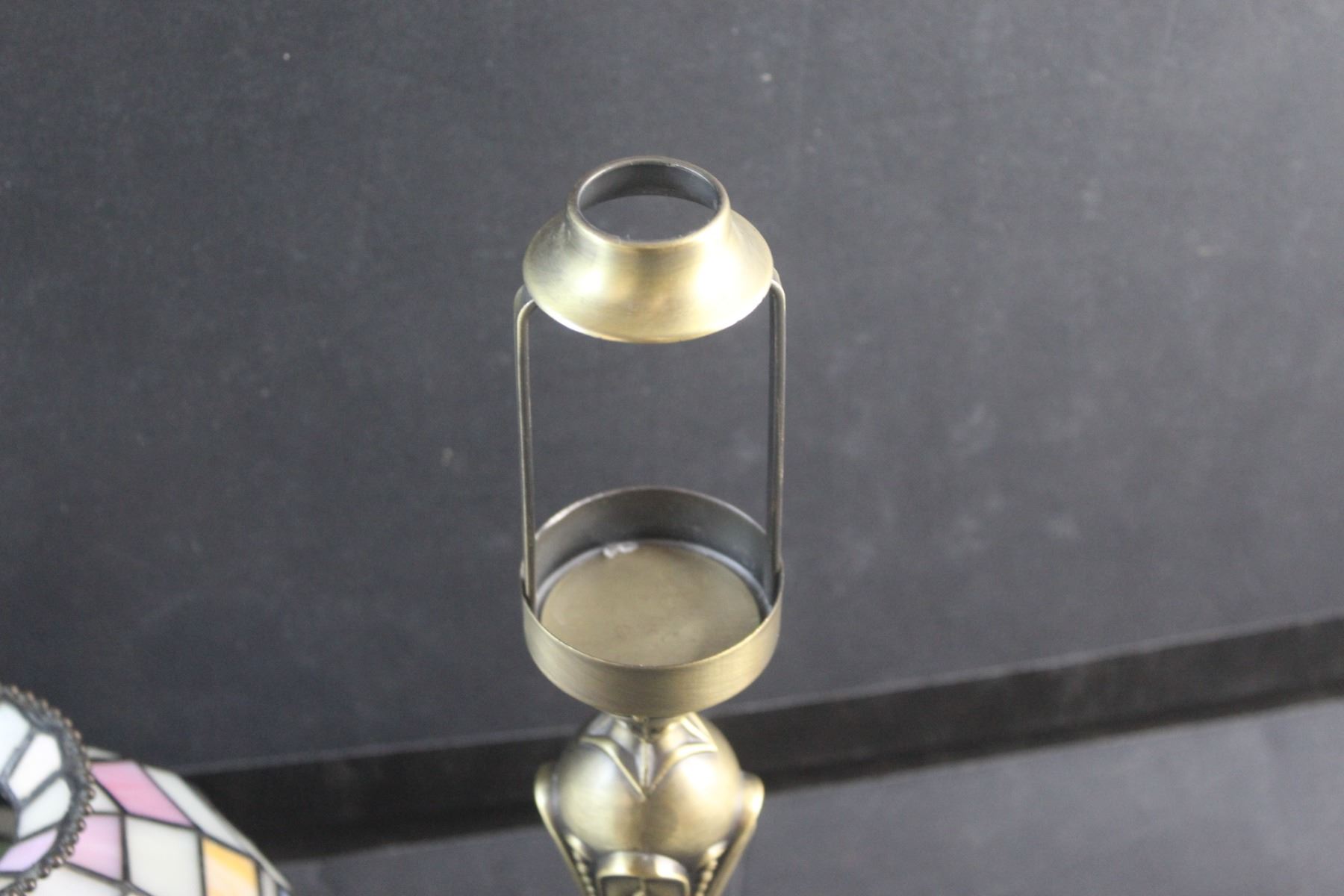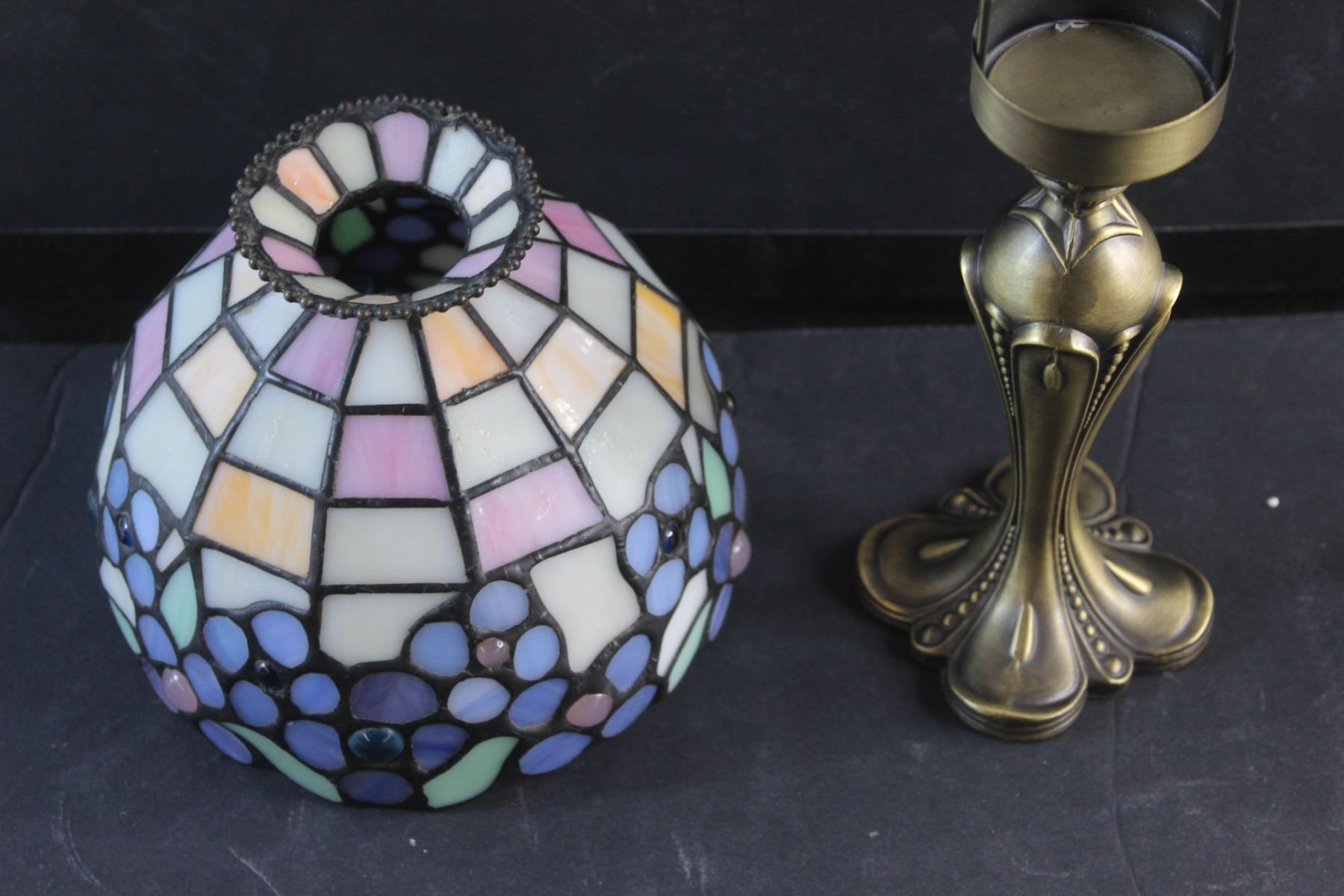 Brass Candle Holder with a Shade and Stained Glass Candle Holder