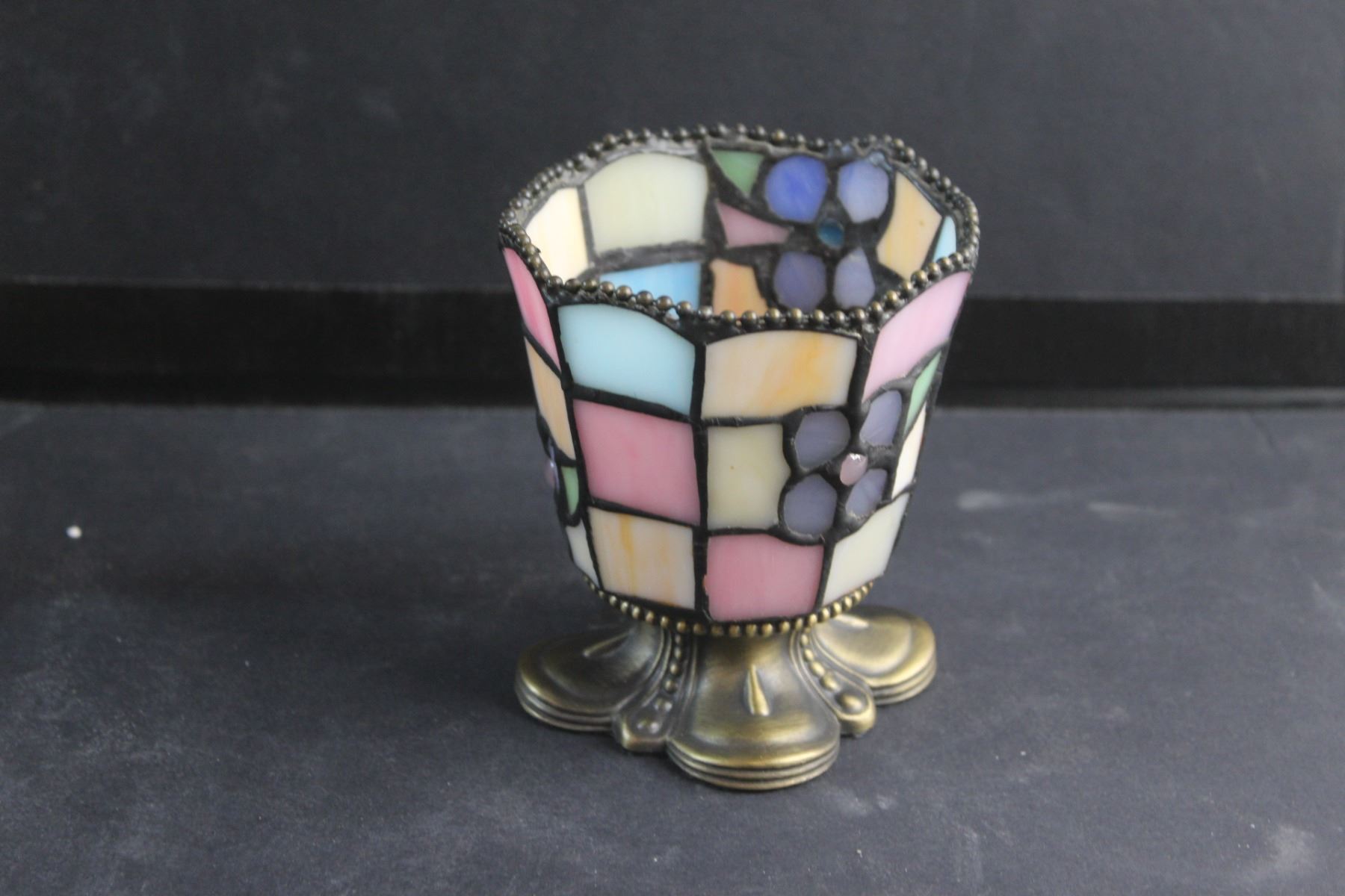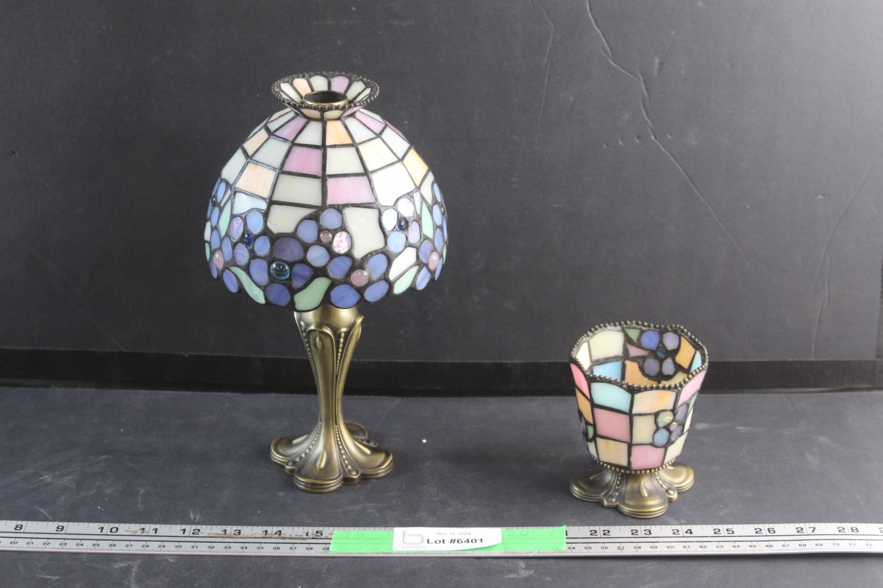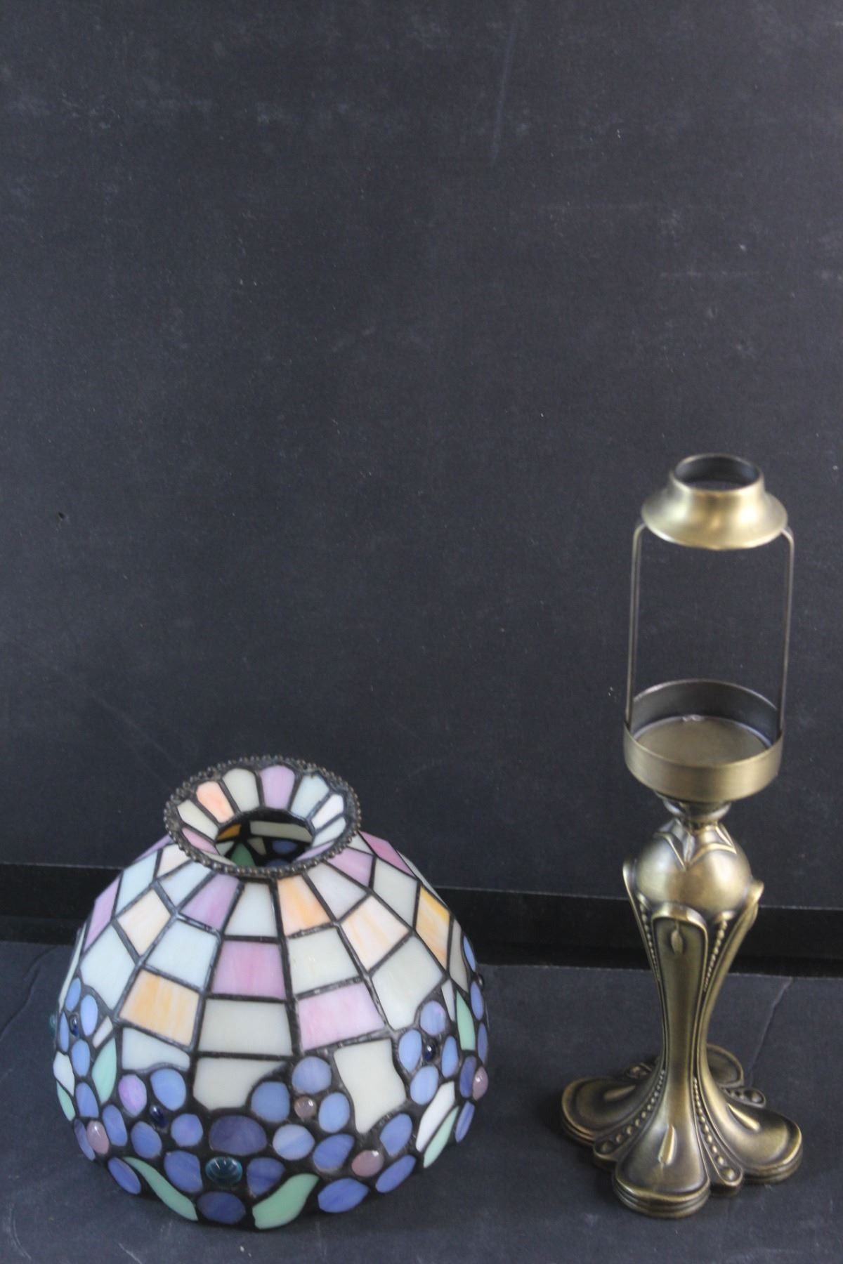 Brass Candle Holder with a Shade and Stained Glass Candle Holder