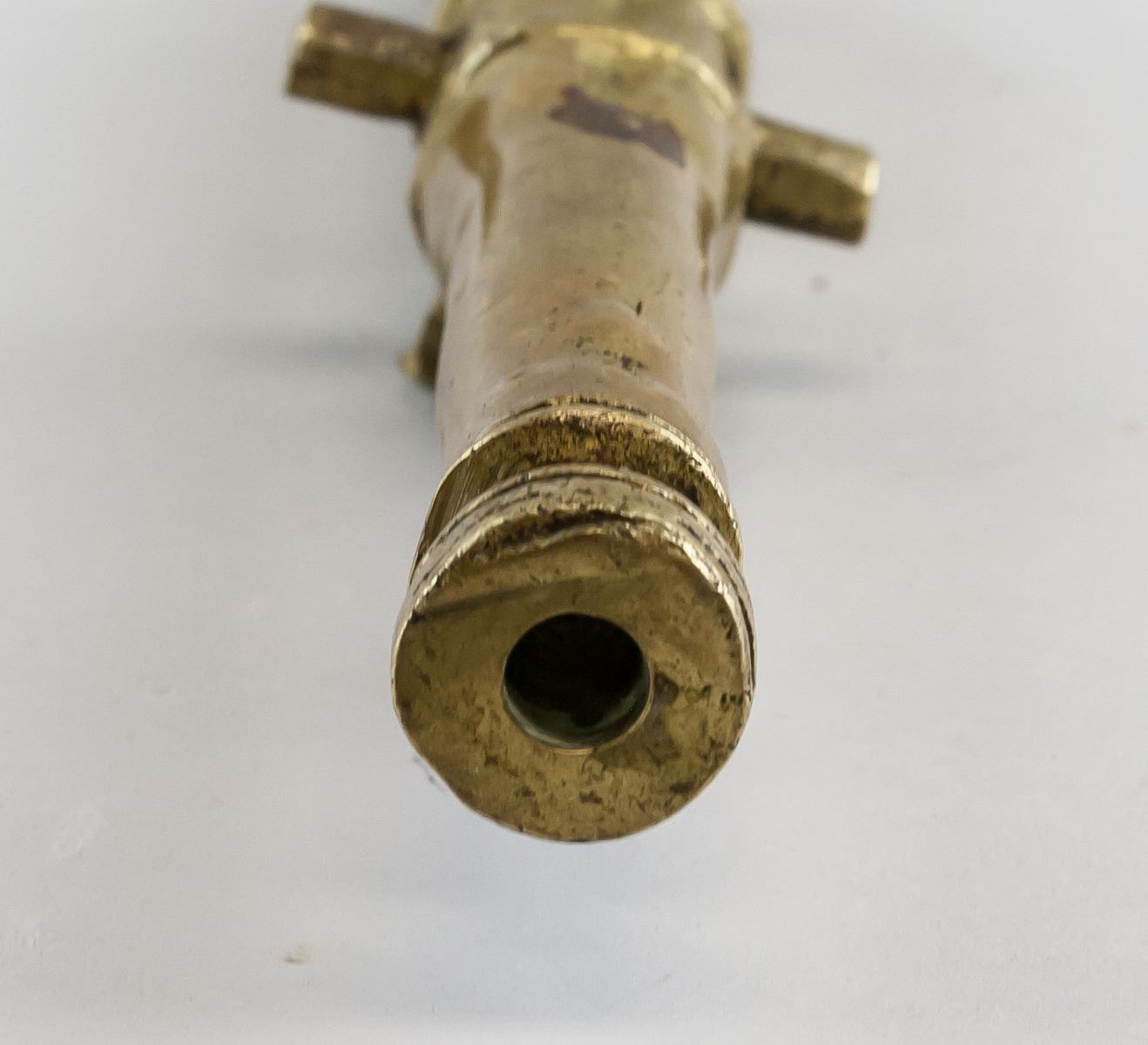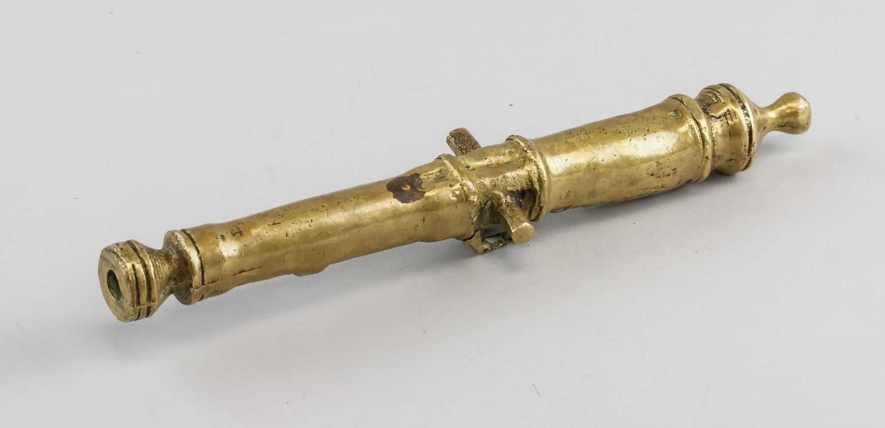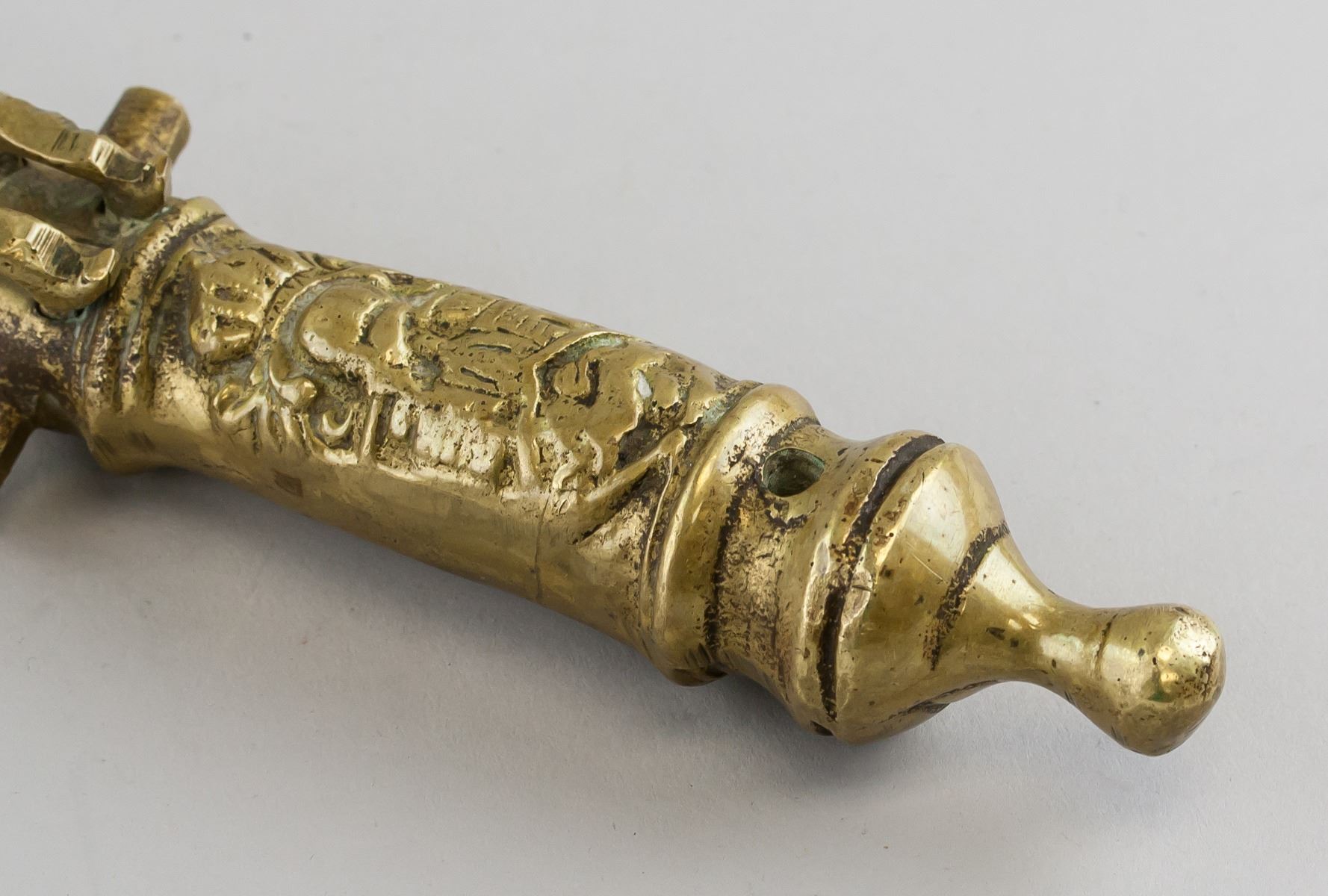 Brass smoking pipe. Of canon form. Carved with abstract designs. 26 x 5 cm, 892 grams