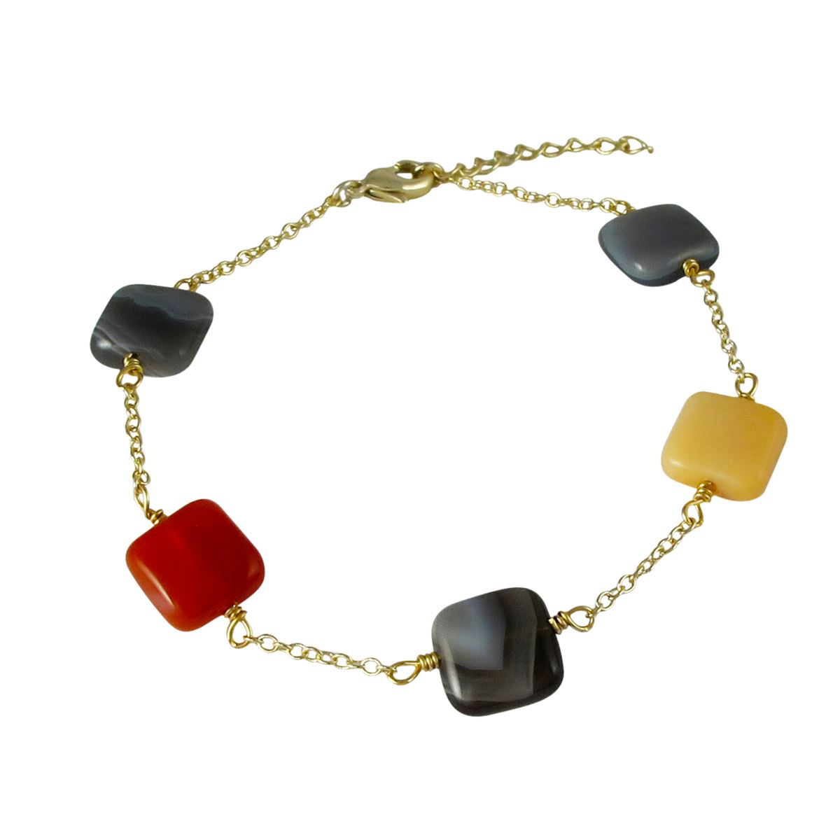 Brass Chain, Assorted Colors Semi Precious Square Stones Bracelet