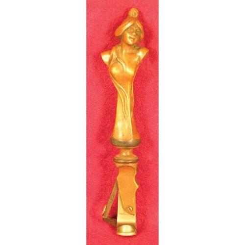 Brass Cigar Tip Cutter Handle in the shape of Victorian nude. Excellent condition. 6 inches long.