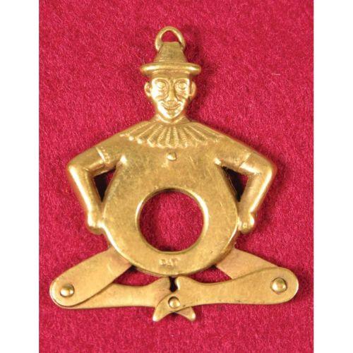 Brass Cigar Tip Cutter of Clown. Squeeze knees together to cut tip of cigar. Excellent condition. 1 1/2 inches tall.