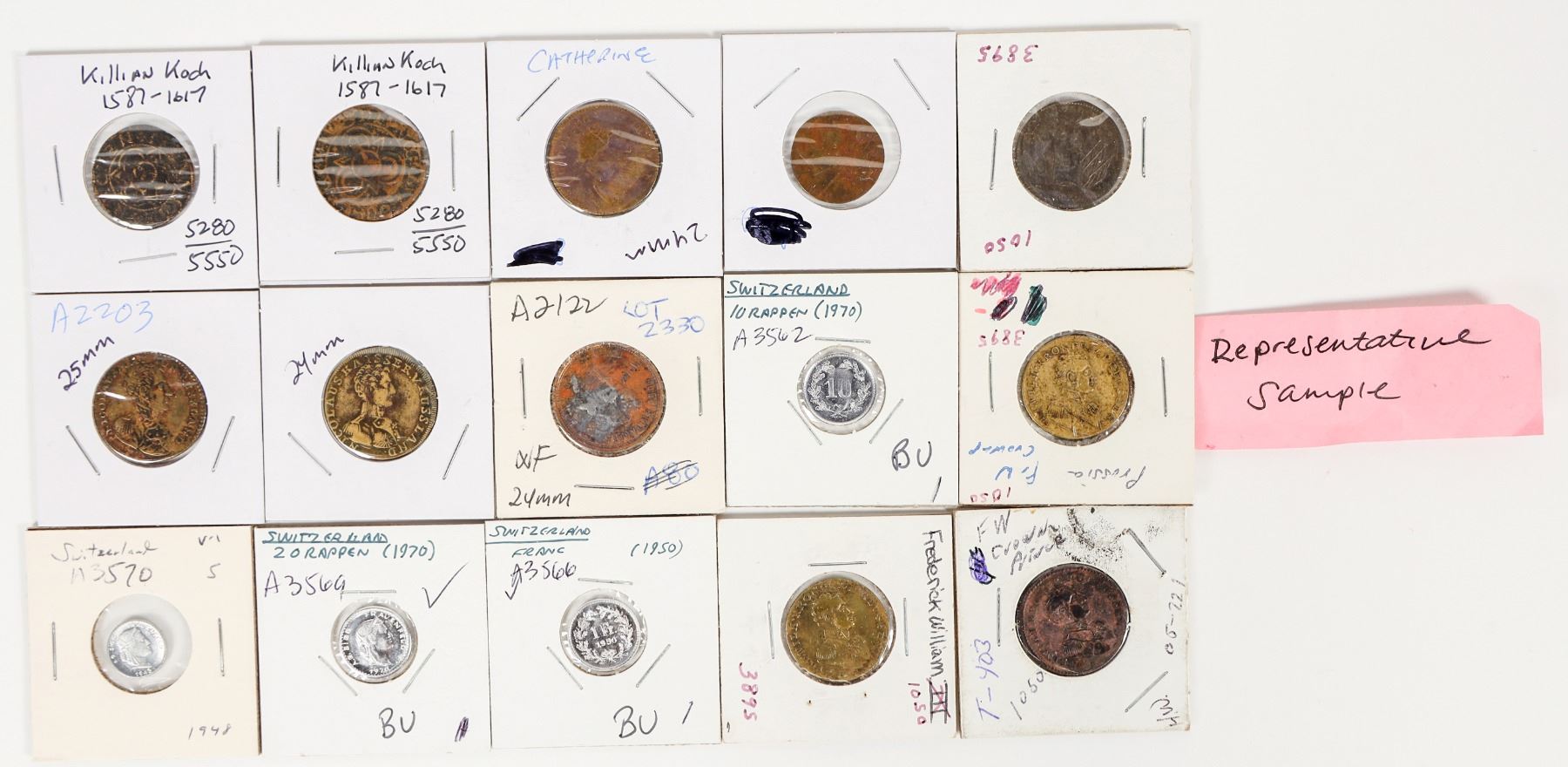 Thirty-five gaming counters as follows: Russia (3 brass); Switzerland (4 aluminum); German/Austrian (4 brass); Prussia/Frederick Wilhelm (5 brass); Kilian Koch/Nuremberg (19 brass).