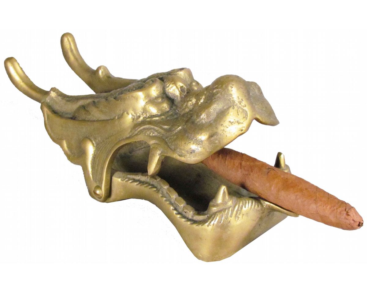 Brass Devil Dragon Ashtray. Hinged jaw. Very good condition. 3 1/2 X 4 X 8 inches.