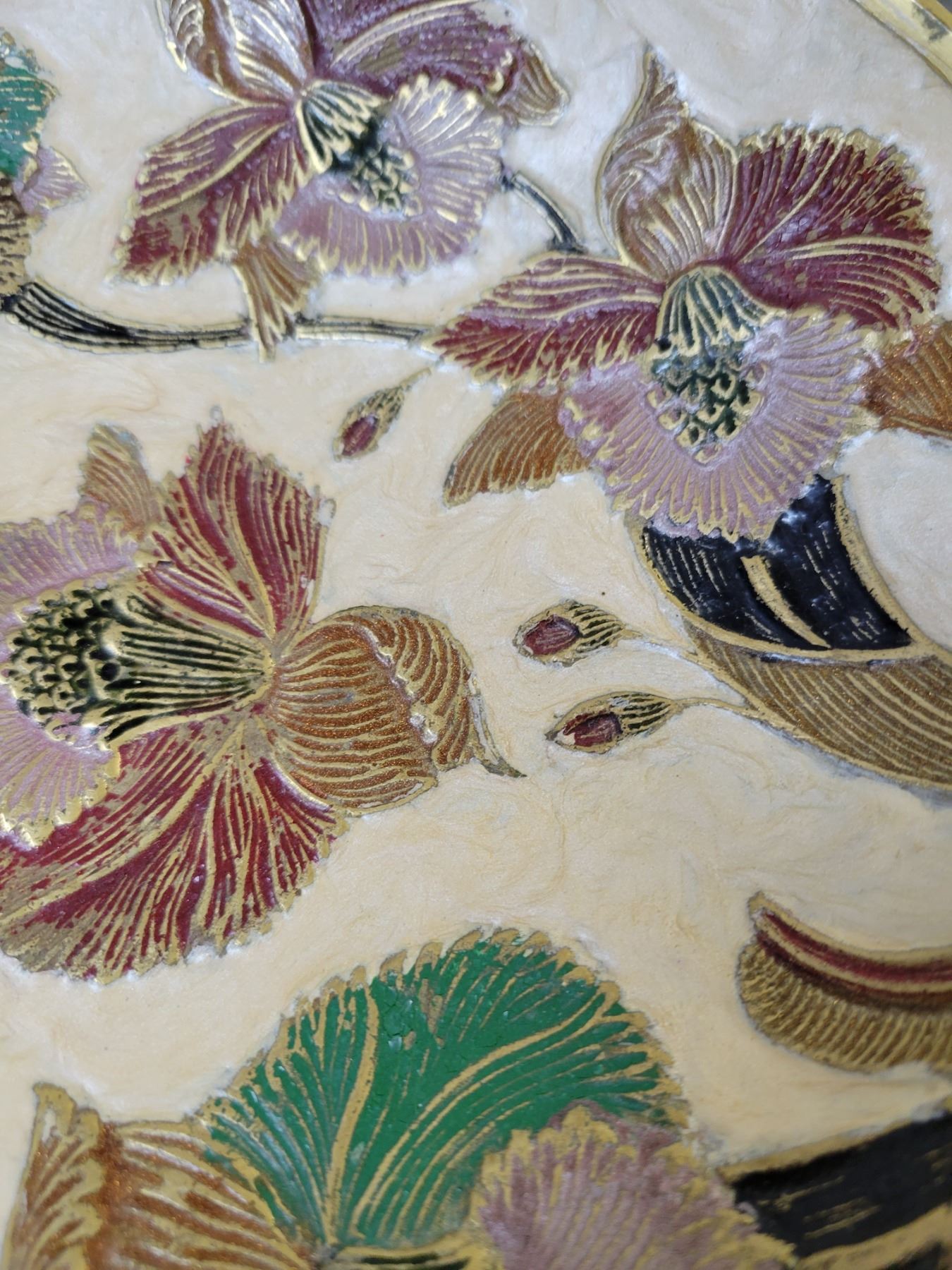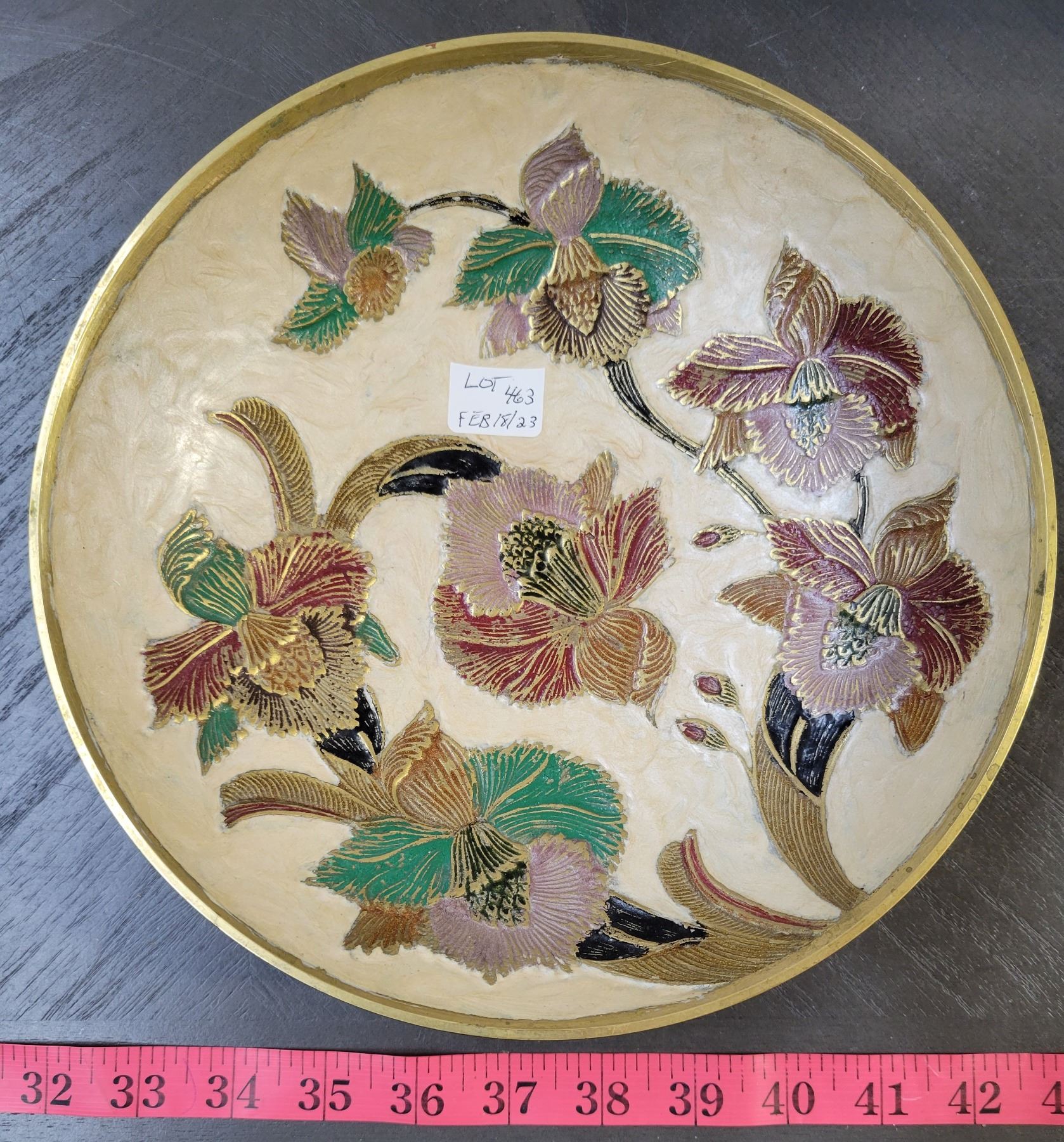 Brass Dish - Floral Enamel Pattern - 9" Diameter