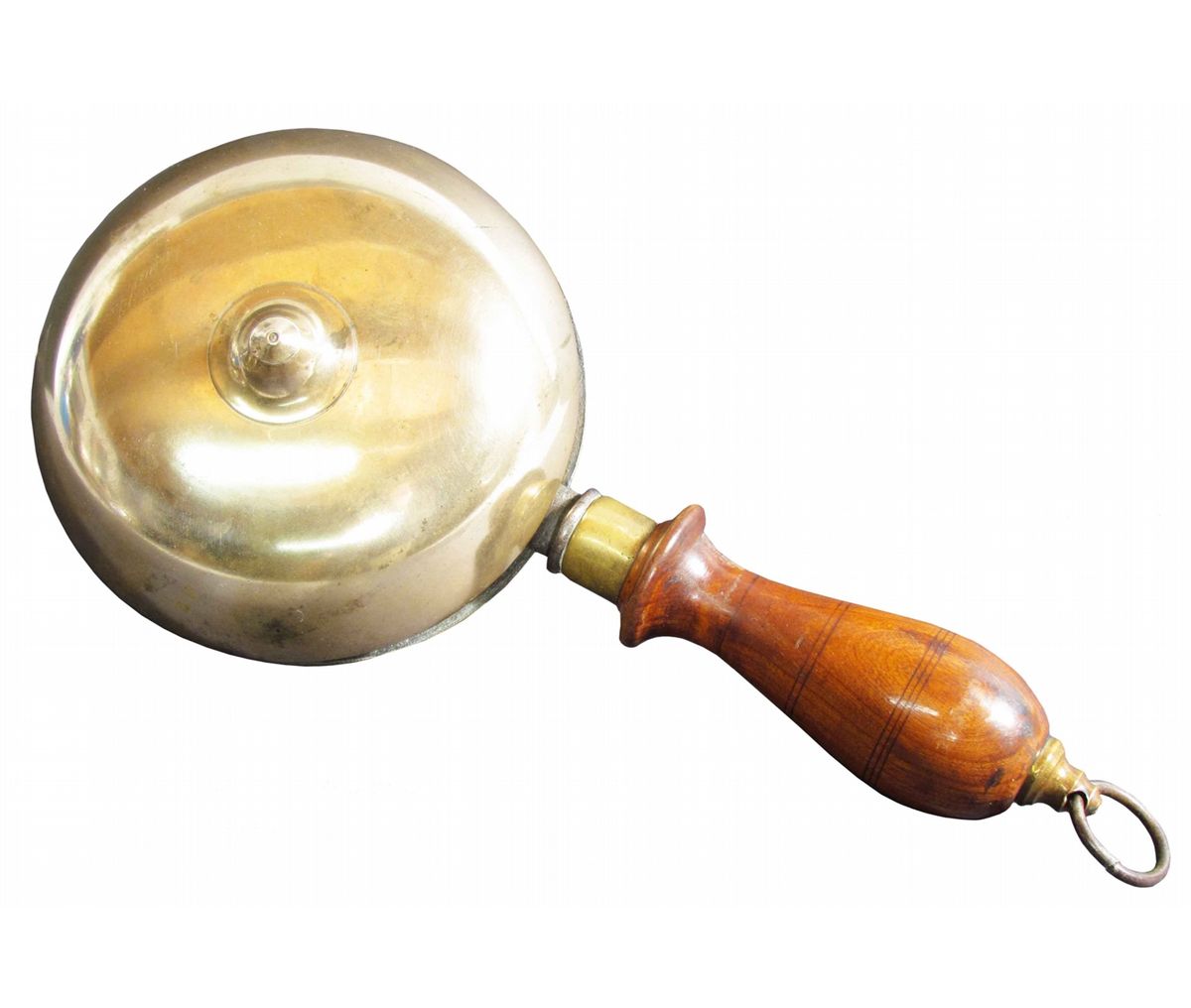 Brass Fire Muffin Bell. 5 inch bell diameter with turned wood handle.