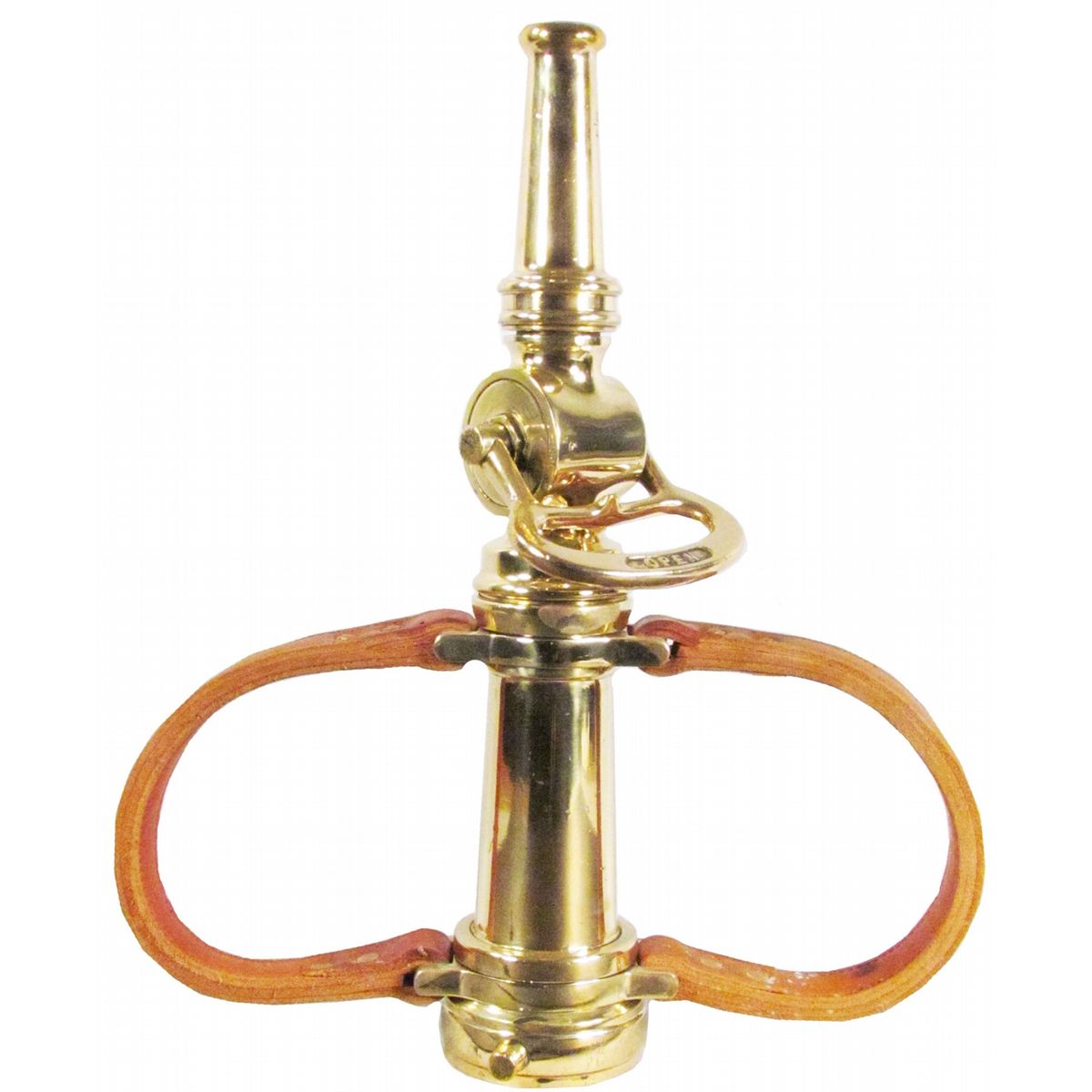 Brass Fire Nozzle with red leather handles and shutoff. Handles have been replaced. 18 inches tall.