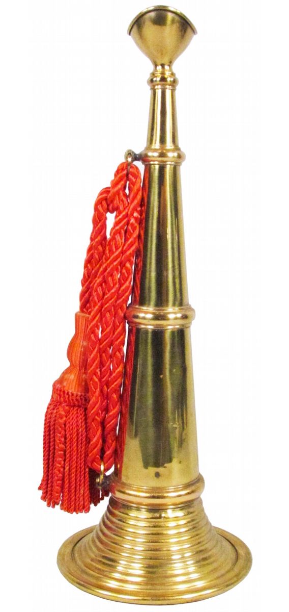 Brass Fire Trumpet with corrugated bell. Unmarked but a classic "Miller" Style. A few minor dents otherwise excellent condition. 18 inches tall.