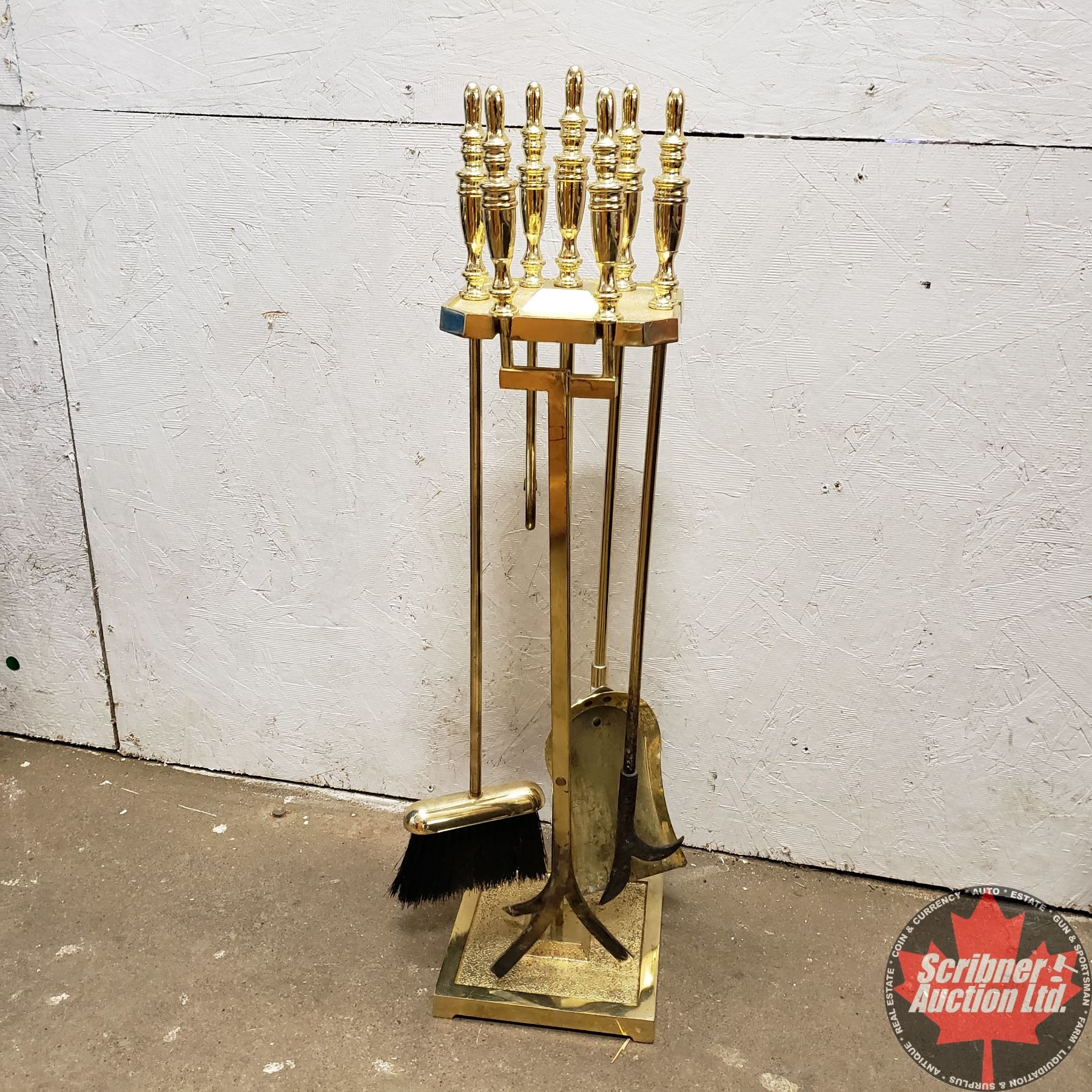 Brass Fireplace Tool Set w/Stand