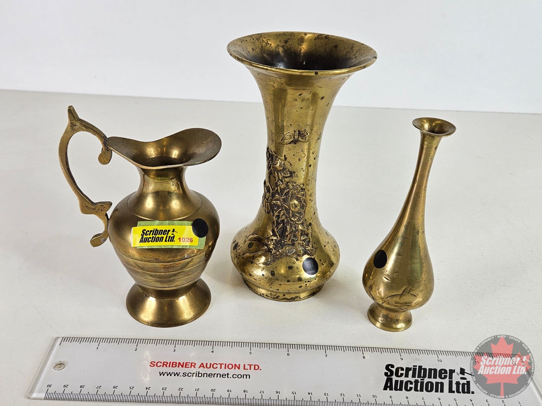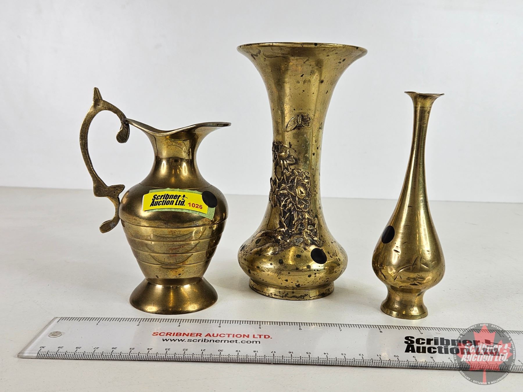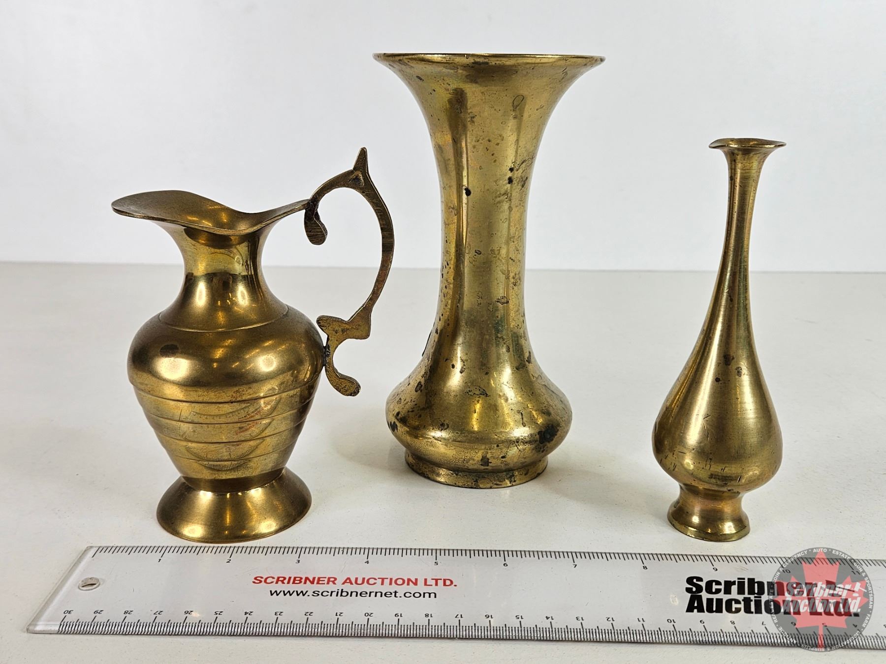 Brass Grouping (3) (Tallest Vase Measures: 7-1/4"H)
