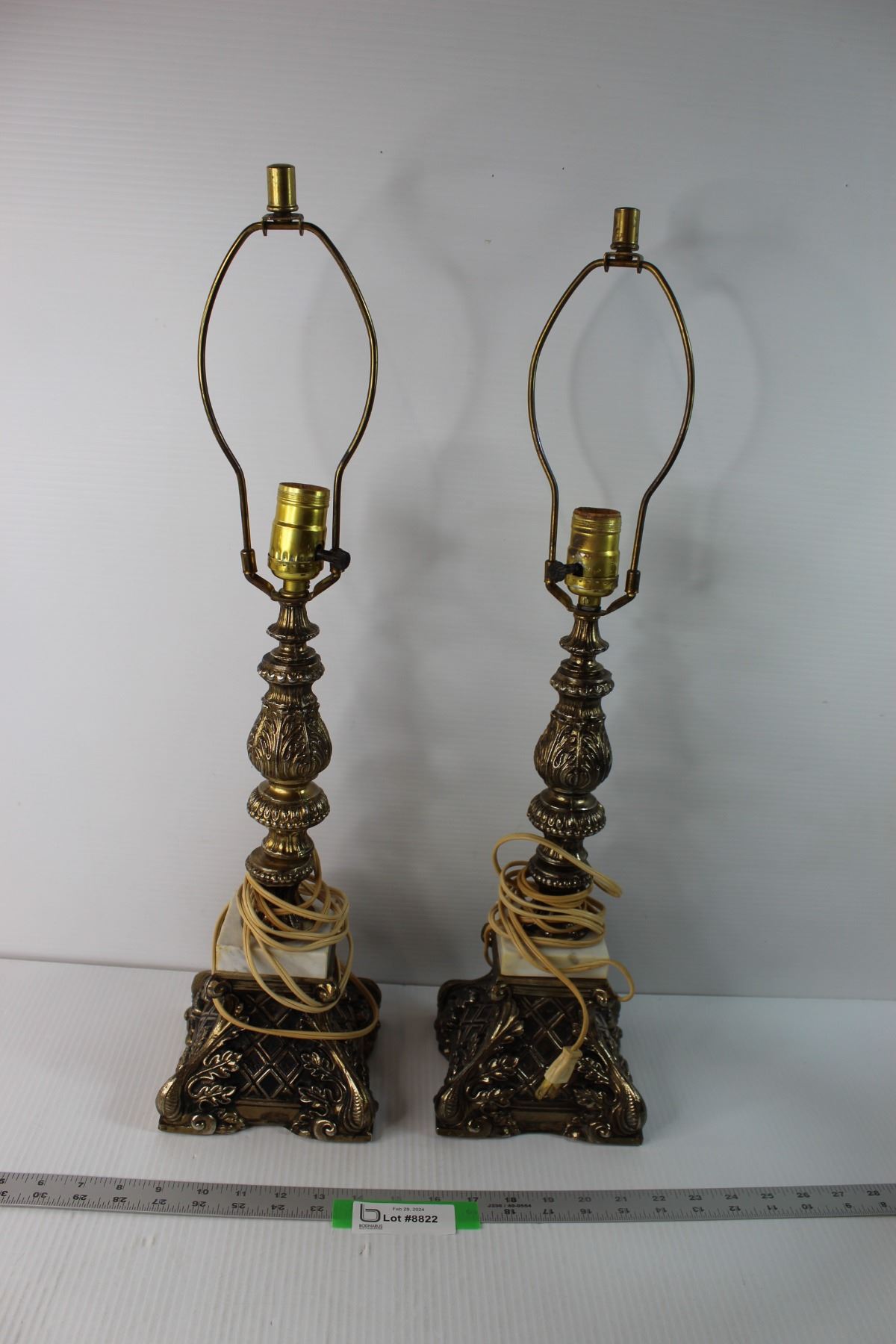 Brass & Marble Lamps - Not Tested, As Is - 25"x6" - One Base is a Little Loose, Could use Tightening