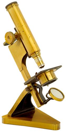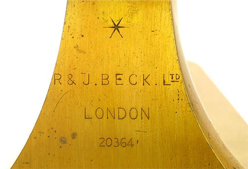 Messing-Mikroskop Beck - Star, um 1890 R. & J. Beck, London, Nr. 20364, Markteinführung um 1885, dieses Exemplar ist etwas jünger. Schöne Zaponierung. Höhe: 28 cm. Edelholzkasten.