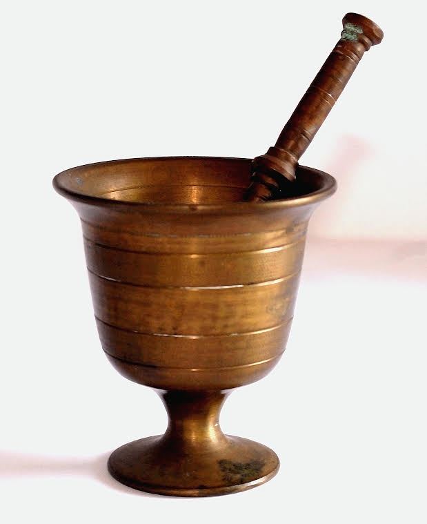 Mortar is 3.5" High Top Diameter 3.25" Base Diameter 2.0625" Weight 438 grams 15.4 oz. Pestle is 5.0625" weight 96 grams 3.4 oz Combine weight 534 grams 1 lb 2.8 oz