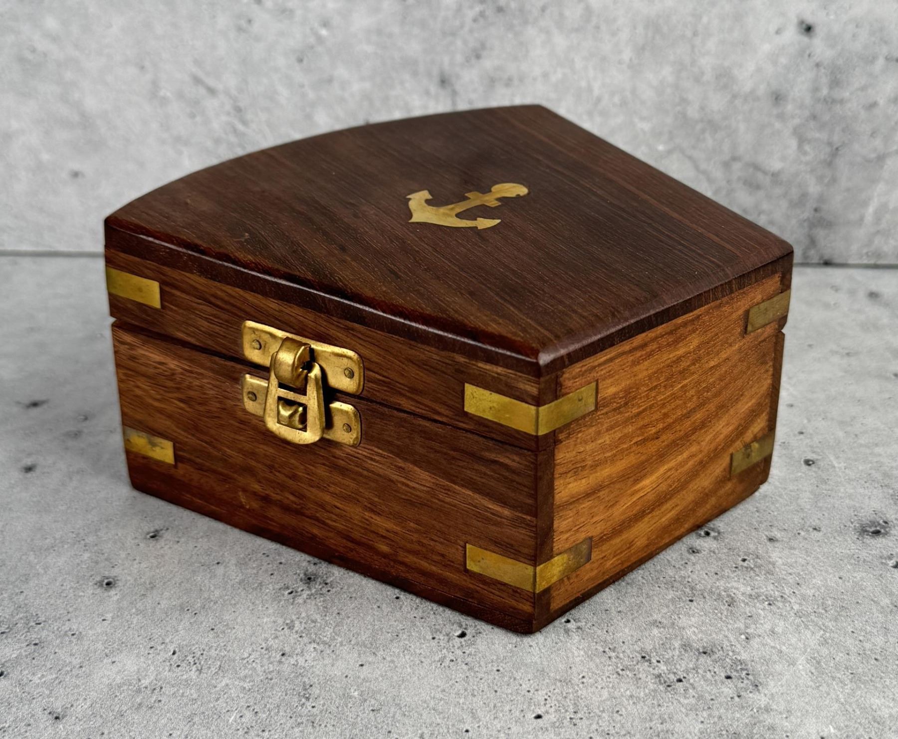 Measures 4" by 3 1/2". Reproduction in wood box.