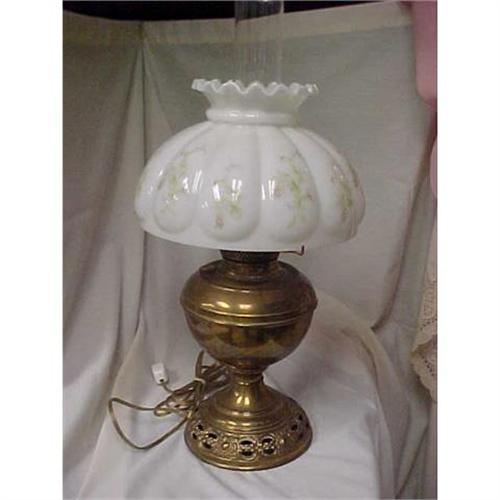<tr><td>Title:Brass Oil Lamp With Glass Shade</td></tr>