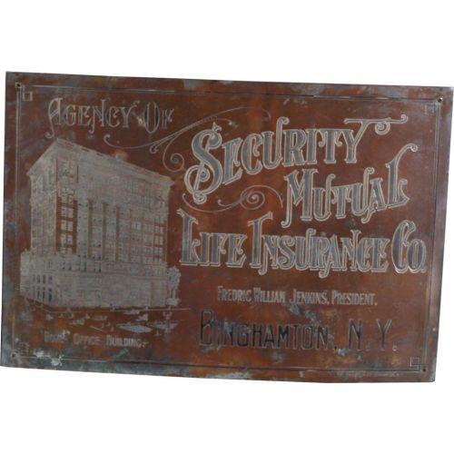 Brass Sign: "Security Mutual Insurance" 19 x 13