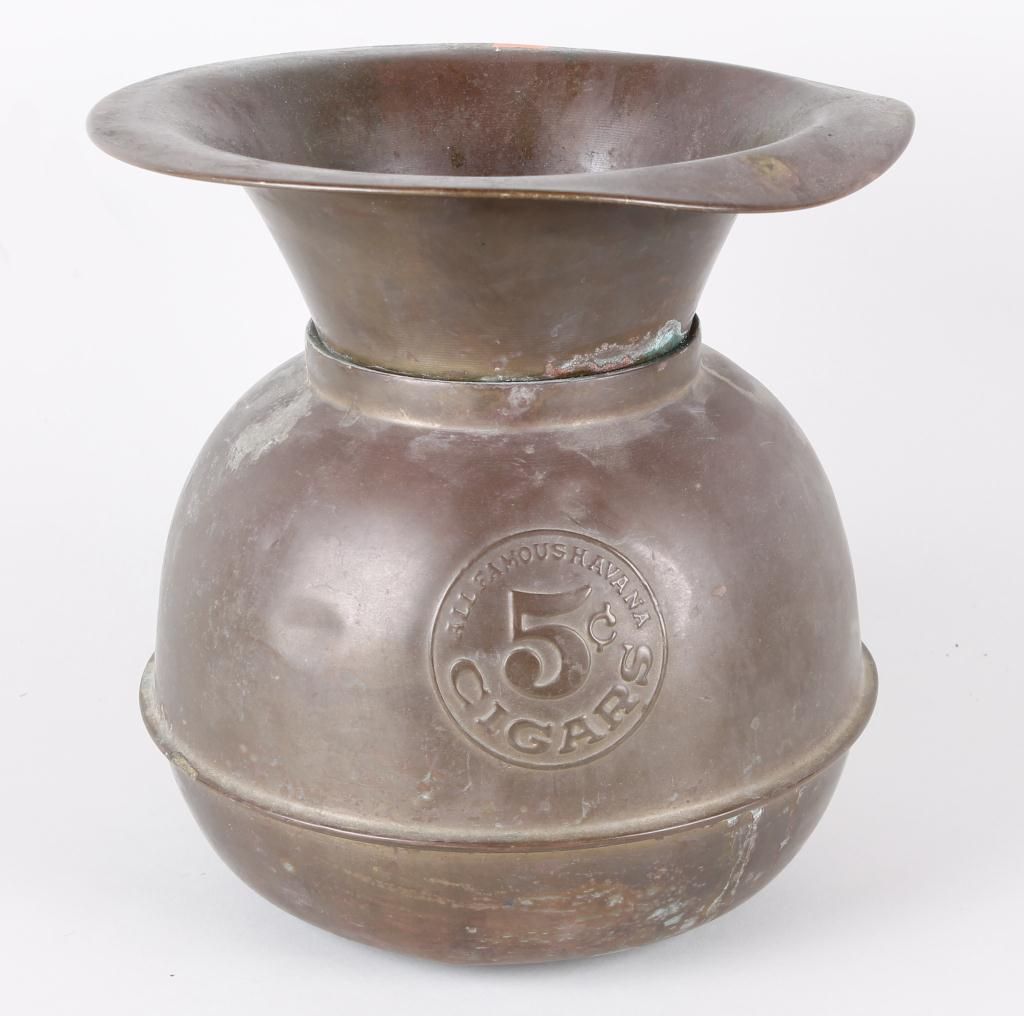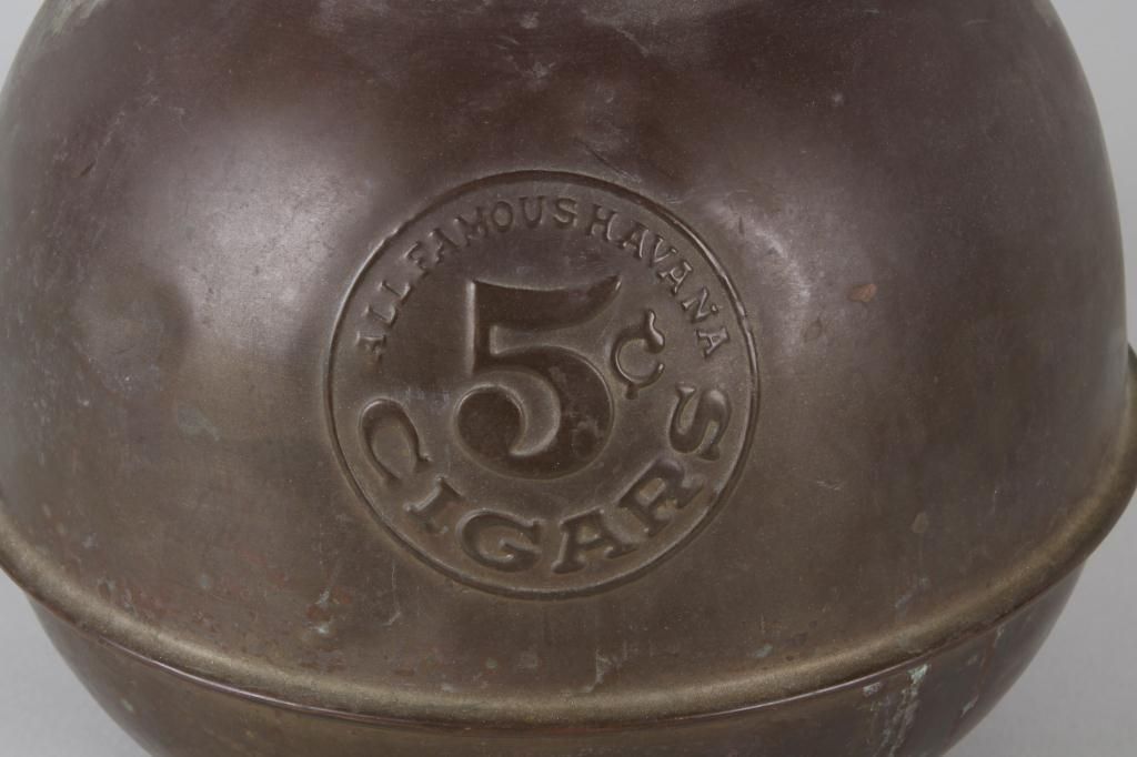 Stamped " All Famous Havana 5 cent Cigars". Measures 9-1/2" diameter and 9-1/2" tall.