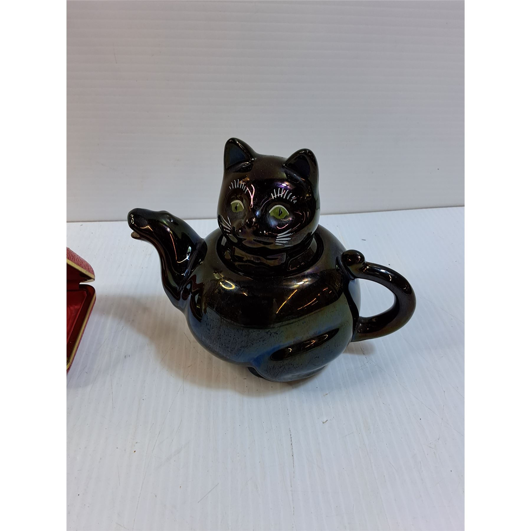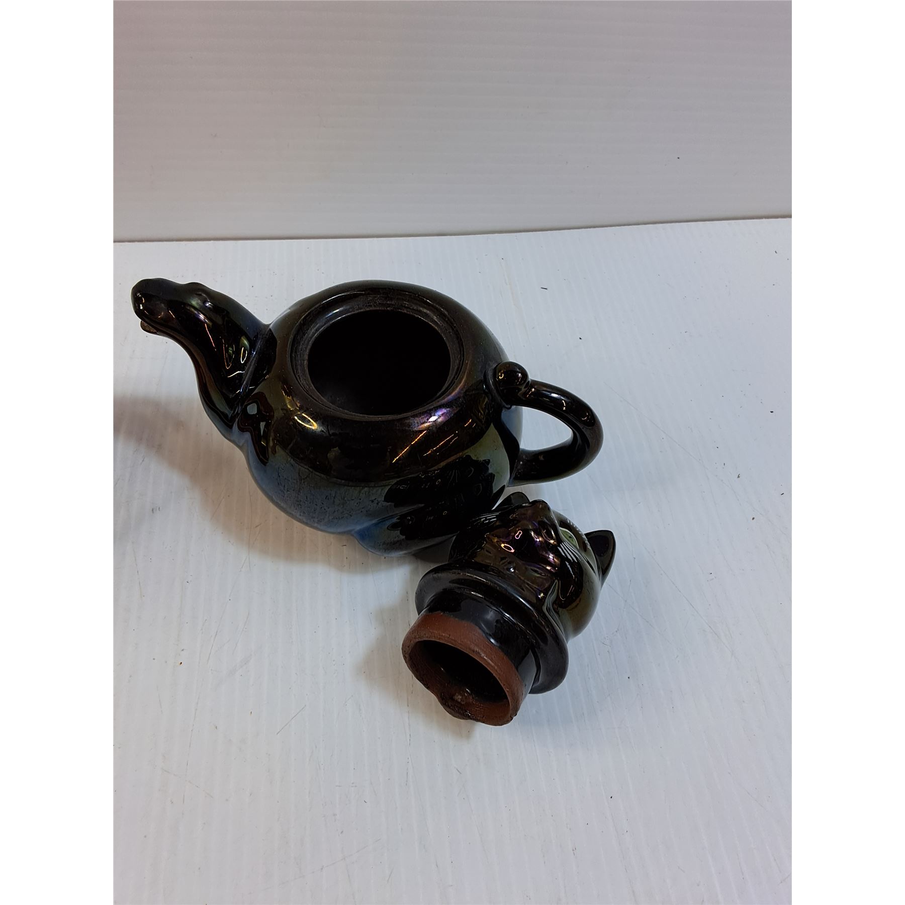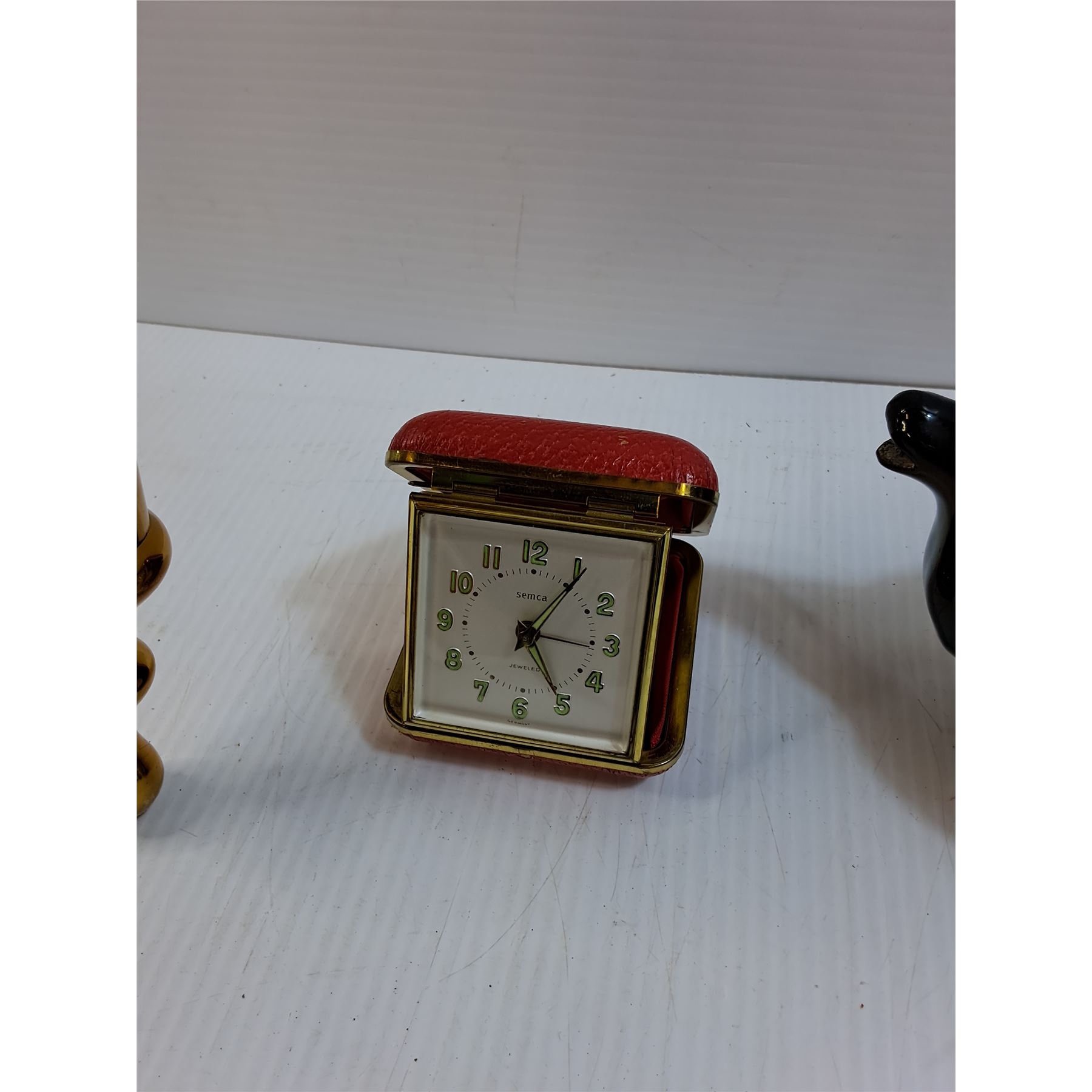 Brass Style Candle Wall Mount Holder, Black Iridescent Mini Teapot, Vintage End Table Clock - As Is