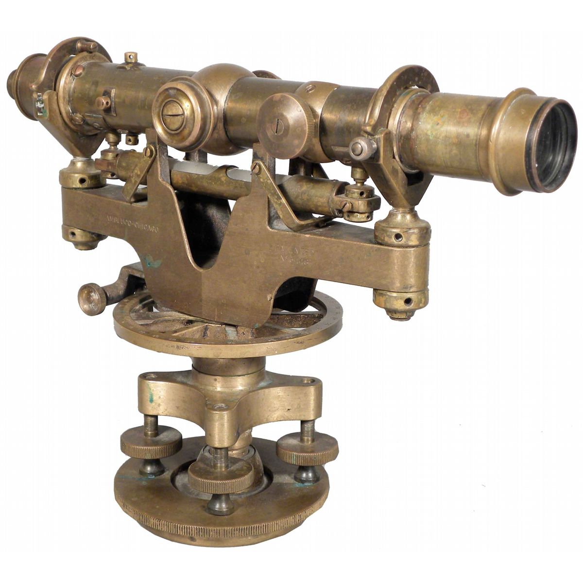 Brass Surveyors Telescope. Mfg by Ambluco-Chicago. Patent No. 5448. Excellent original condition. 12 X 9 X 4 inches.