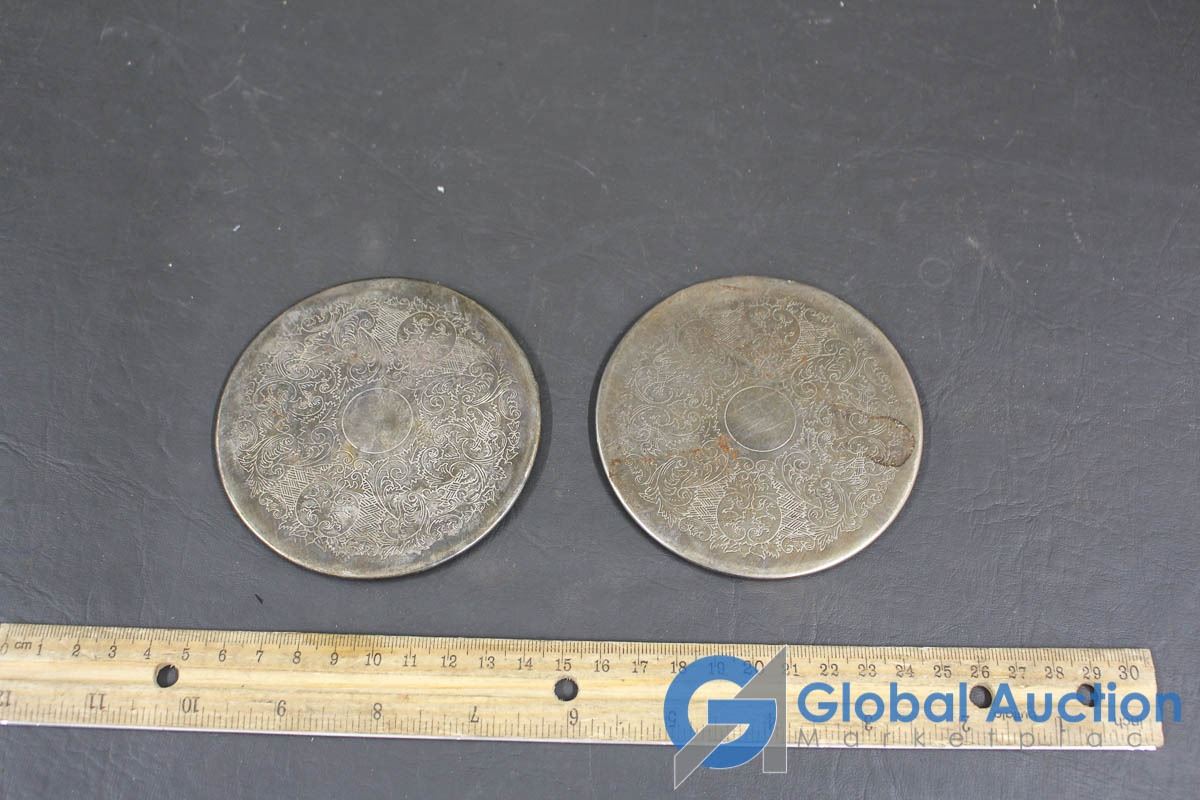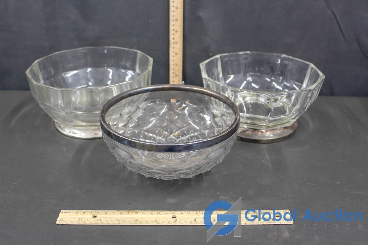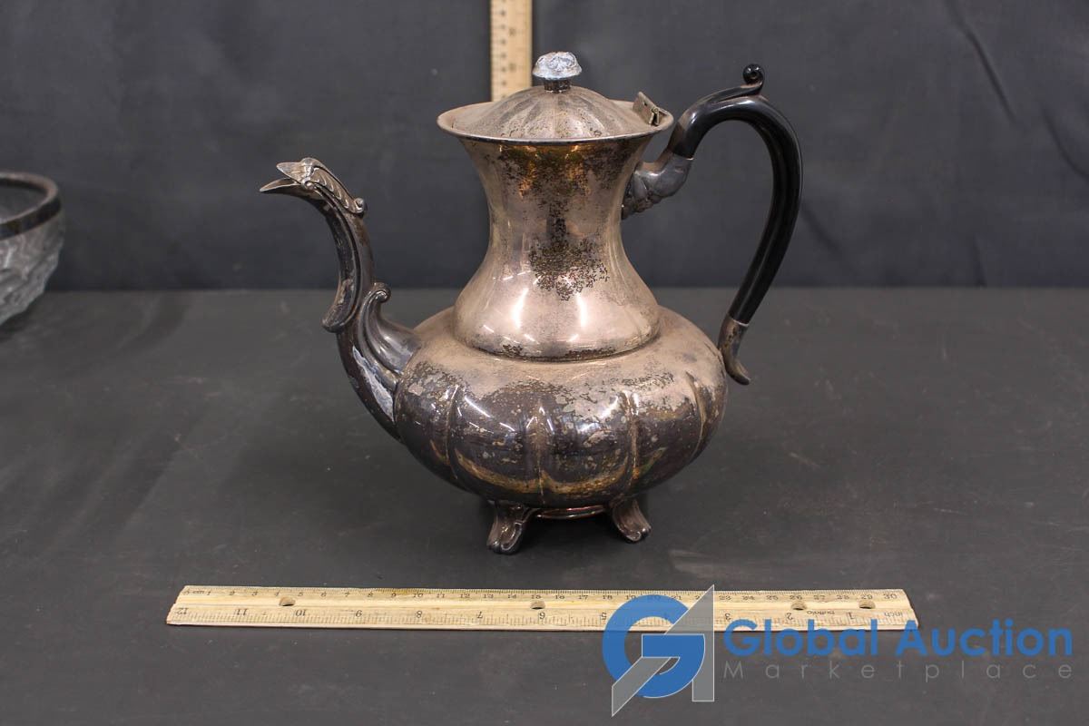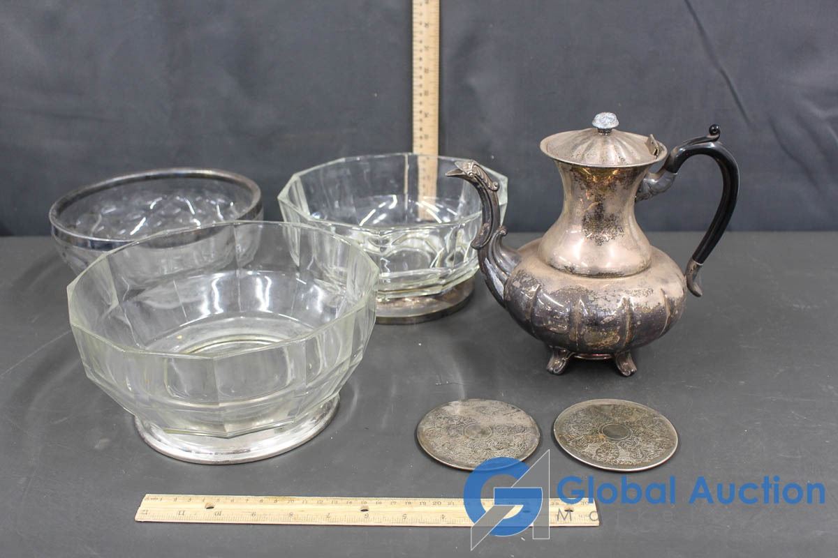 Brass Tea Pot with Coasters & 3 Glass Bowls