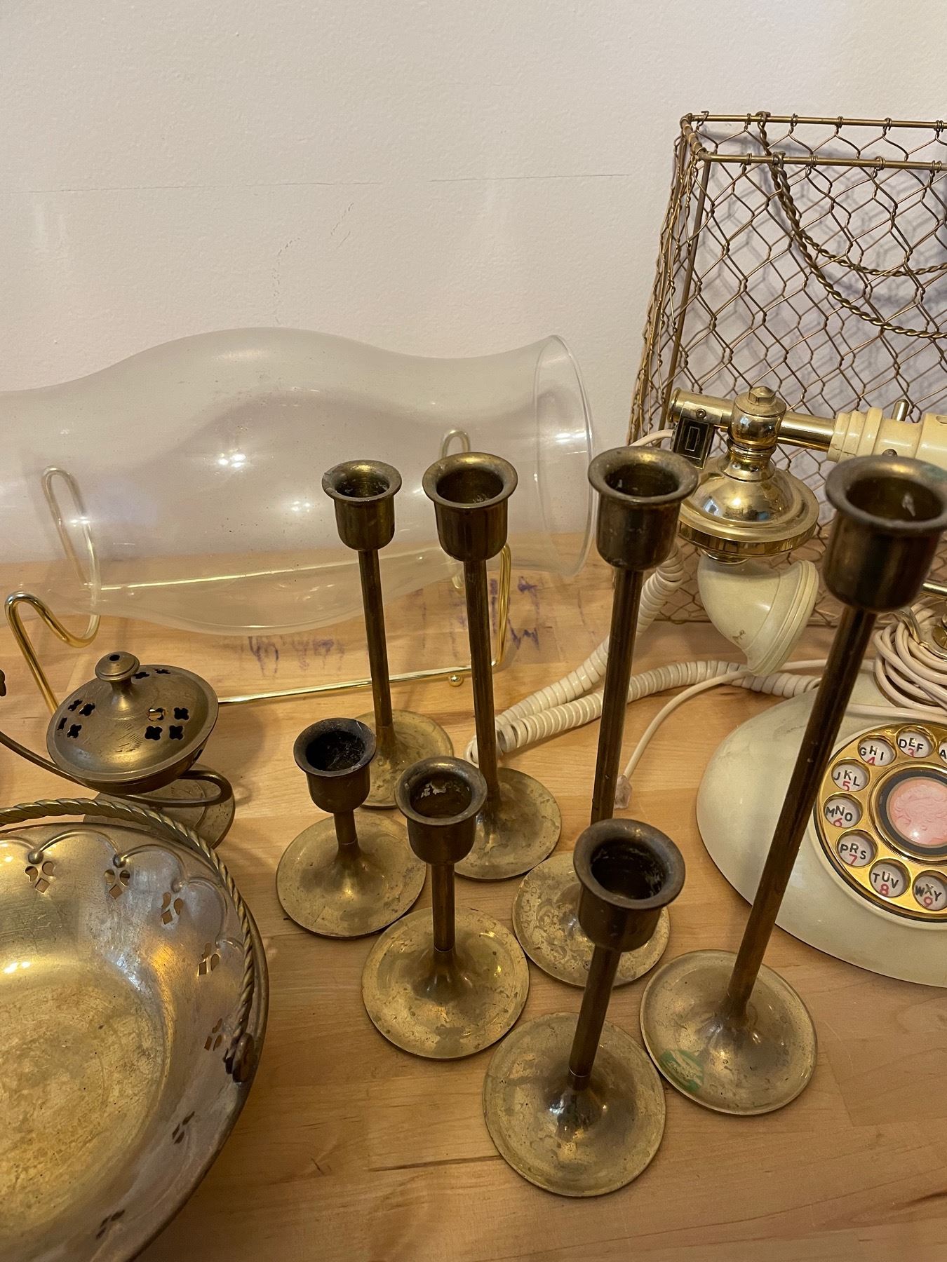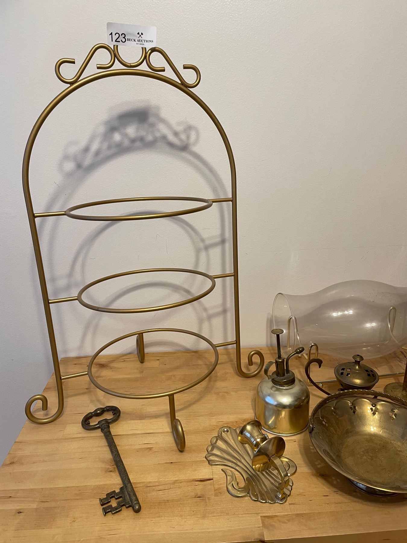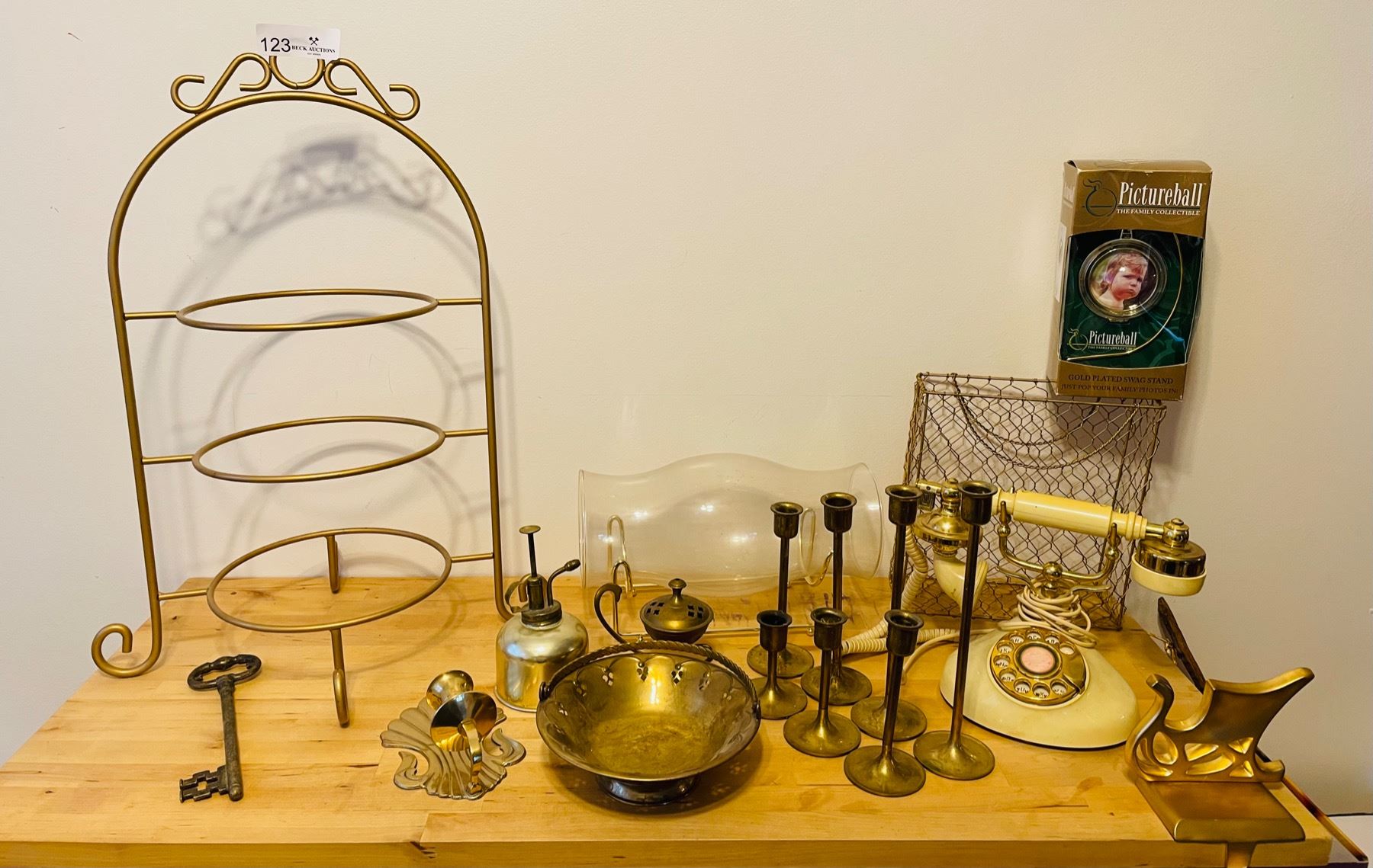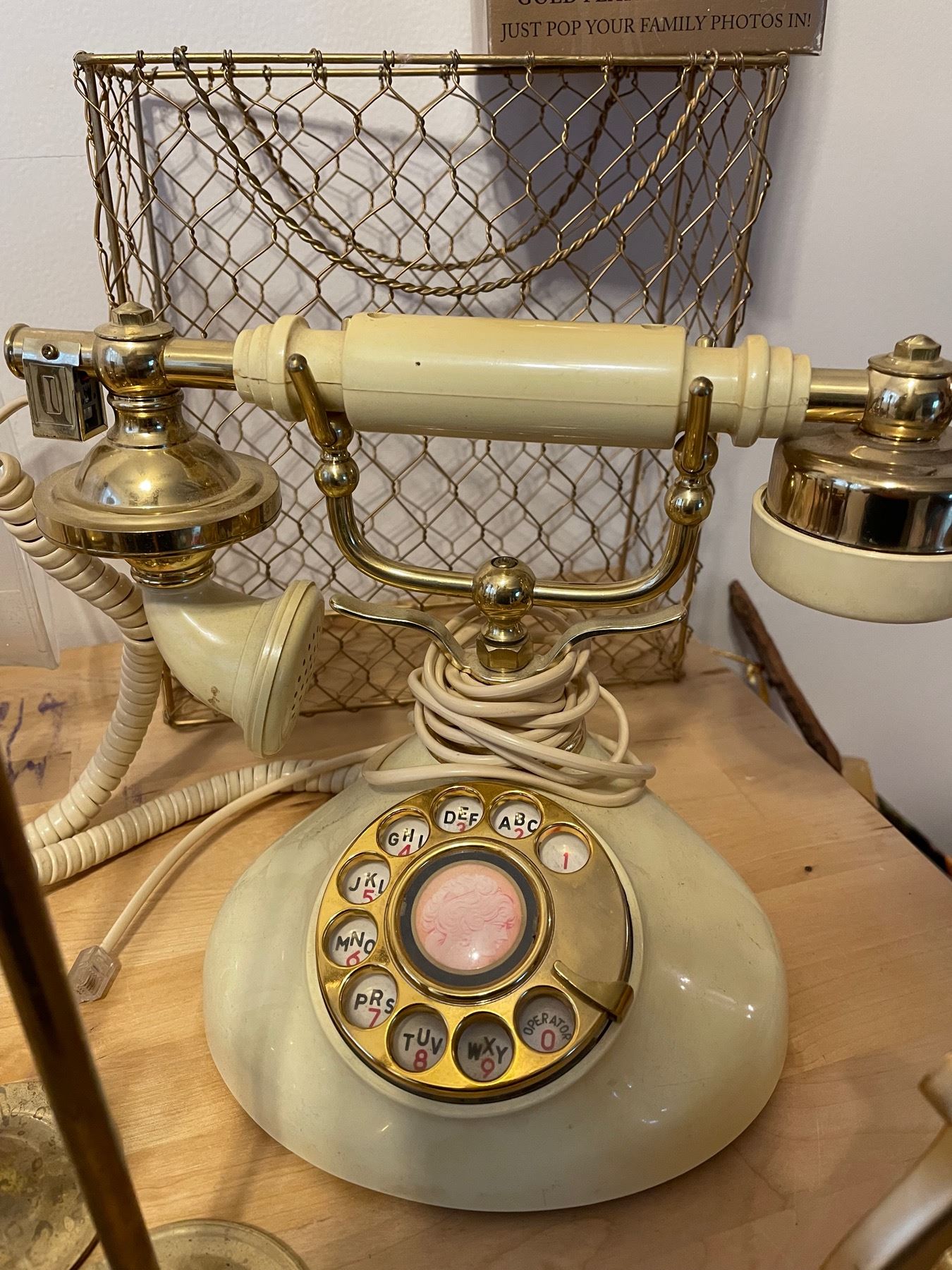 Incense burner, vintage antique rotary dial phone not tested, tiered stand, and more!
