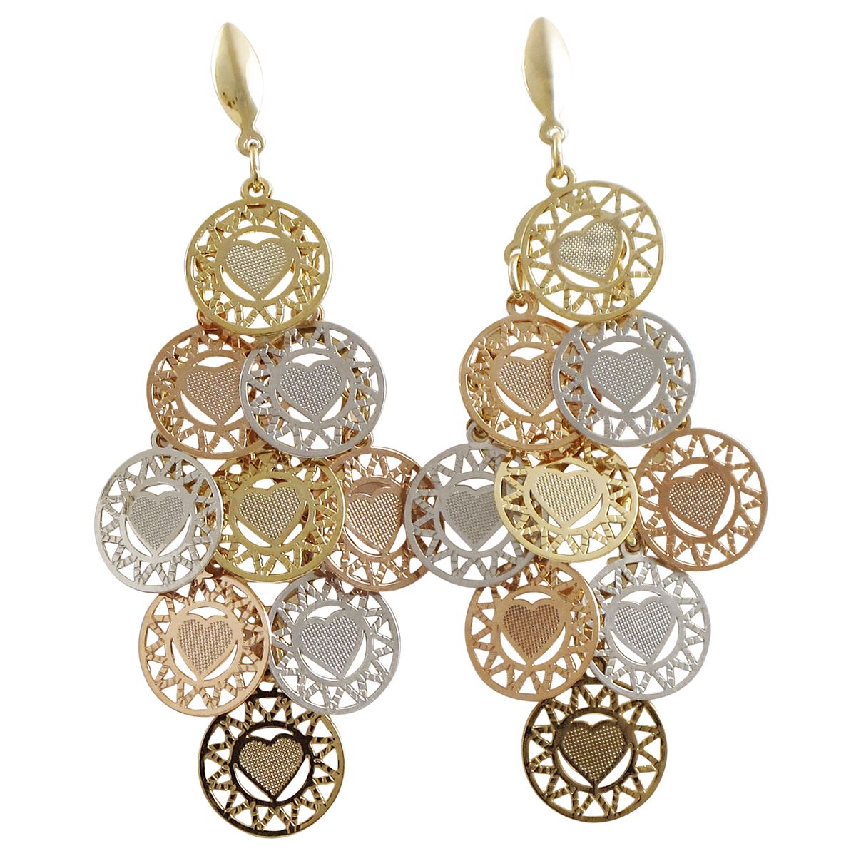 Brass Tri Color Heart Dangling Earrings