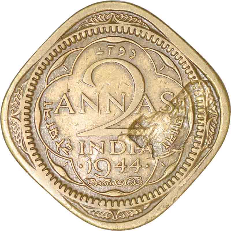 Brass Two Annas of King George VI of Bombay Mint of 1944.
