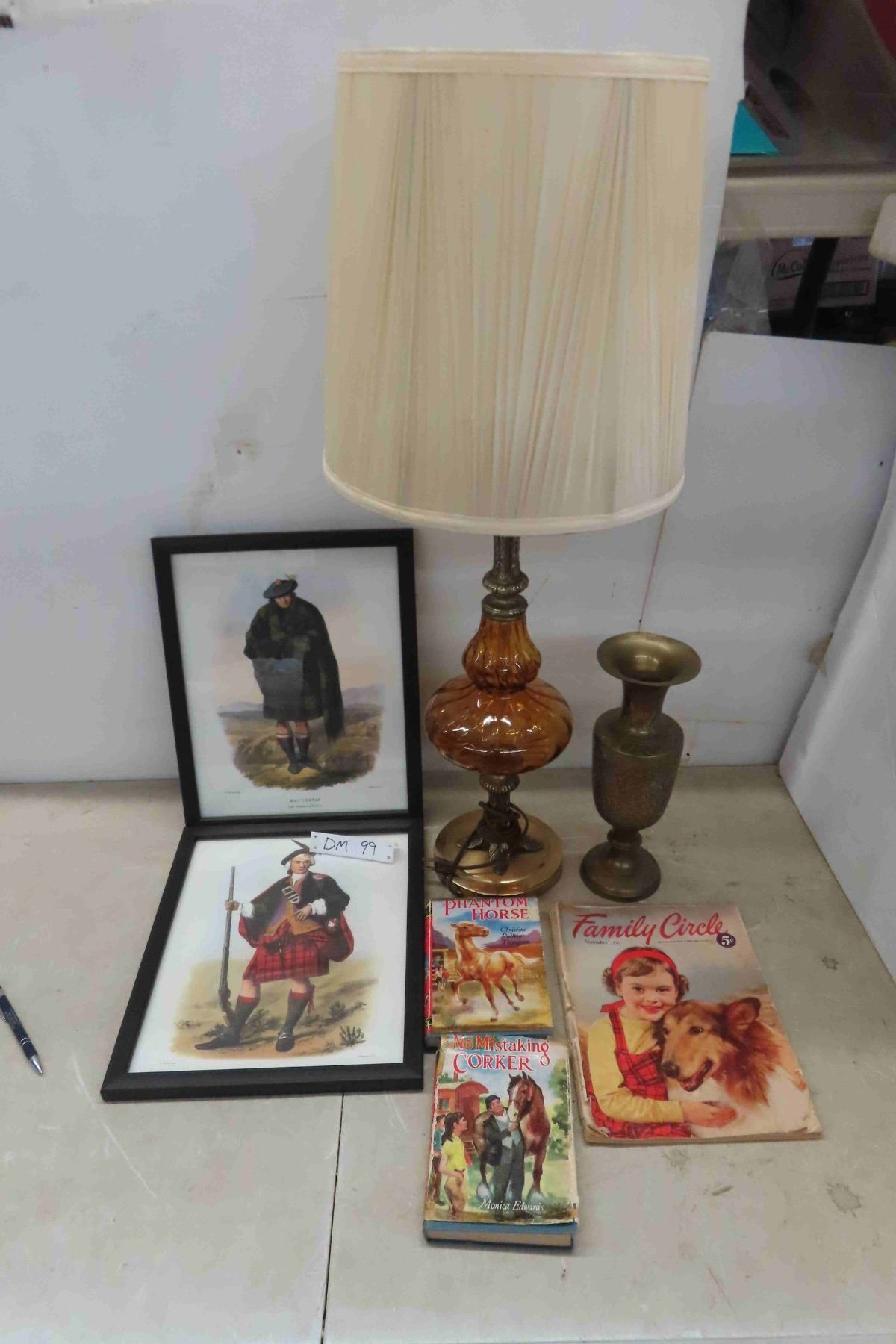 Brass Vase, (2) Pictures and (2) Books and Magazine