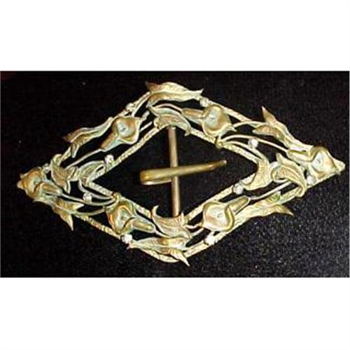 <tr><td>Title:Brass Victorian callalily & paste belt buckle</td></tr>