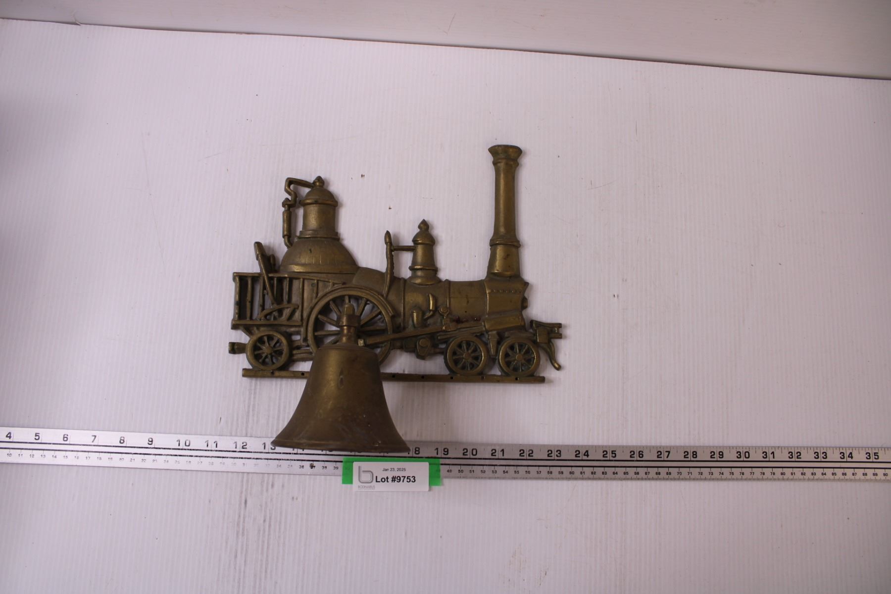 Brass Wall Mount Train Bell Decor - Bell Missing Clapper - 12" x 12"