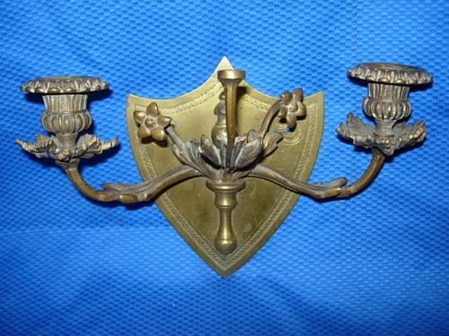 Brass Wall 2 Branch Candleholder Sconce, measures 10 1/2" w., 7" h.
