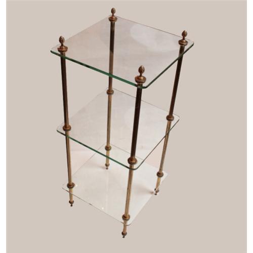A French side table in brass and glass, decorative brass finnials.</em></td>