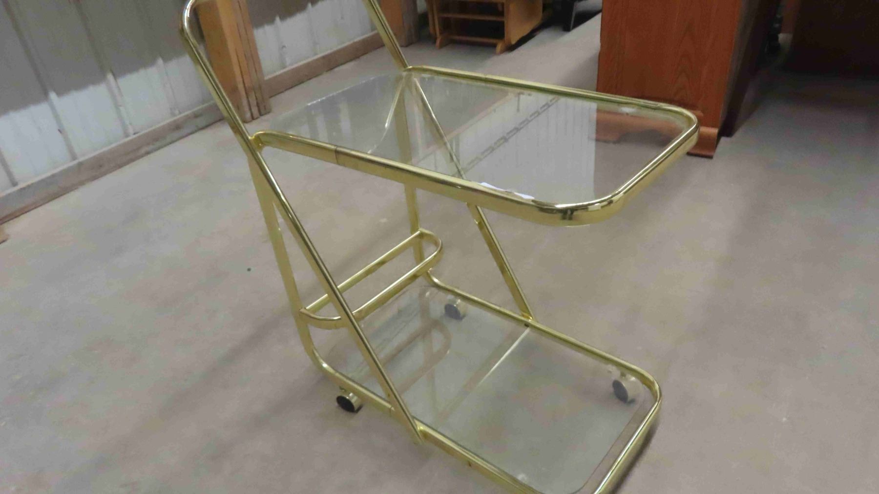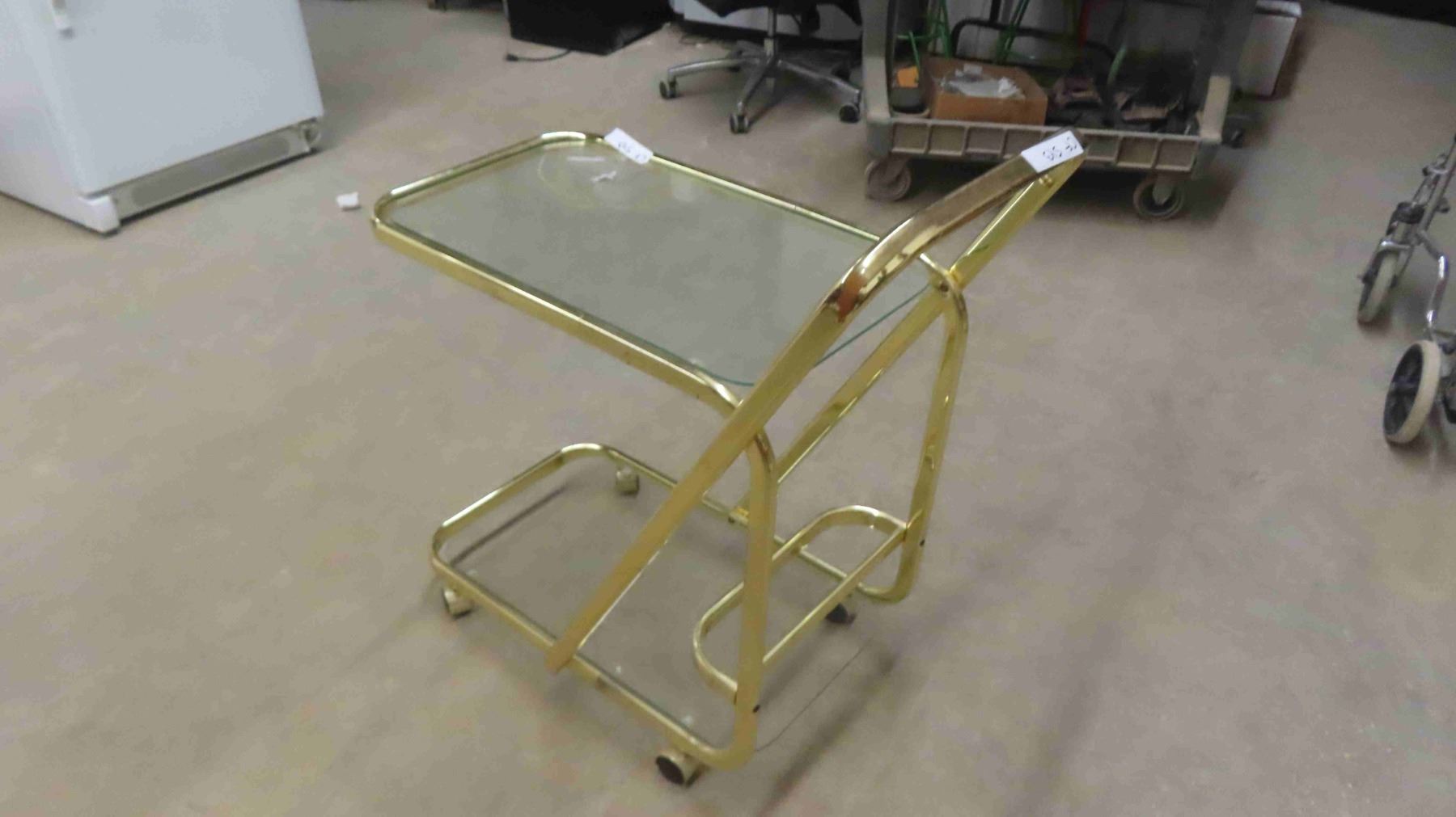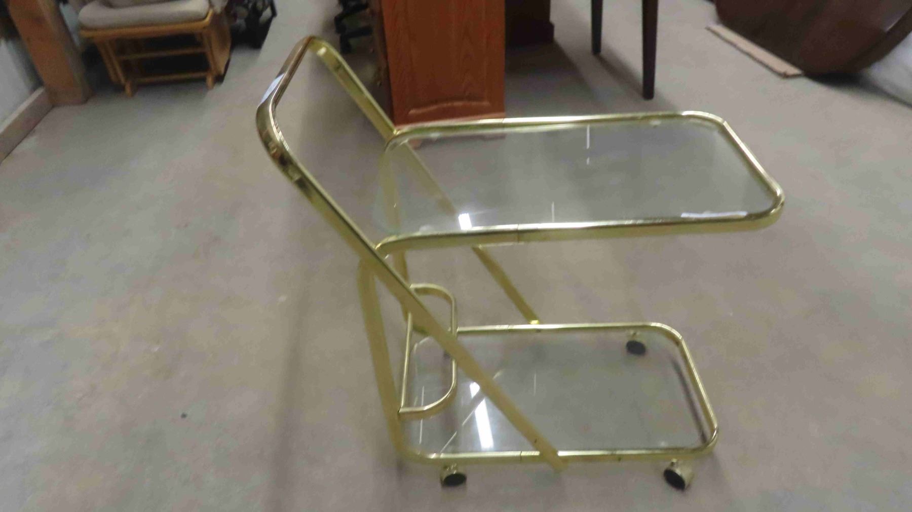 Brass and Glass Tea Wagon 25'' x 26'' x 15'' Plus Handle