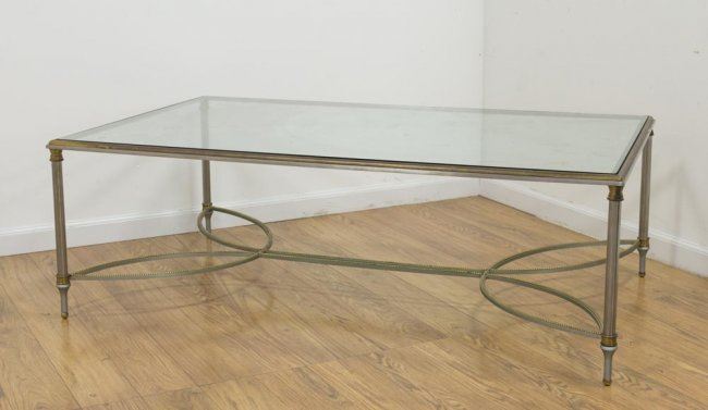 Approx. 18" H x 53" L x 32 1/2" W. Chips on glass.