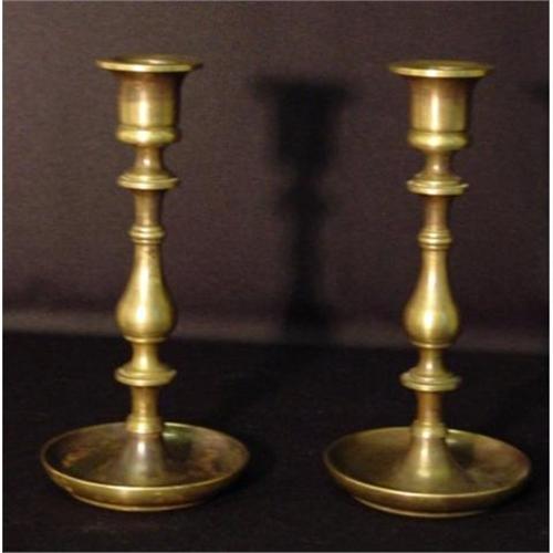 CIRCA 1900 PAIR BRASS CANDLESSTICK H 7"W 3.5".</em></td>