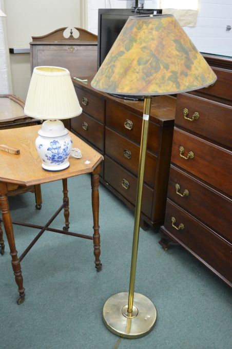 Brass coloured floor lamp and ginger jar porcelain table lamp