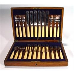 Brass inlaid mahogany cased canteen of twel…