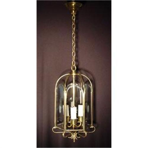 Circa 1930 An hexagonal brass lantern with beveled and cut glass panels.