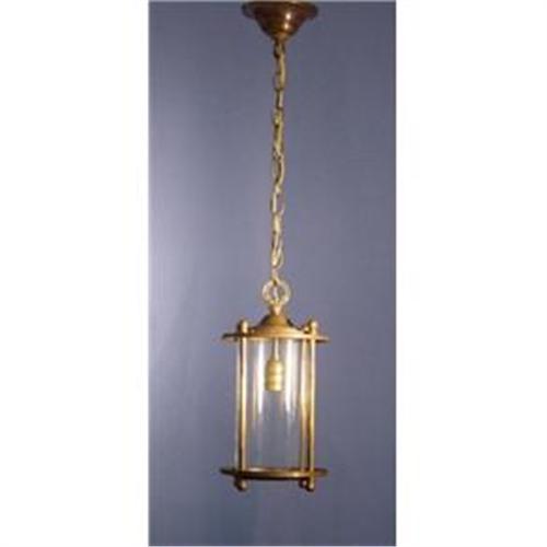 Circa 1920 cylindrical patinated brass lantern with clyer glss lens,height 30 1/2" diameter 7".