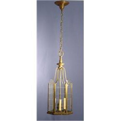 Circa 1920 A hexagonal brass lantern with wheel cut and beveled glass panels.Height 39 " lantern height 22" diameter 9".Height can be modifed for the lantern.We offer 30% off until 2/15/08