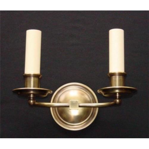 Two arm light brasss sconces in antique finish.Height 8 1/2" width 10 1/2 " .FIFTEEN AVAILABLE.